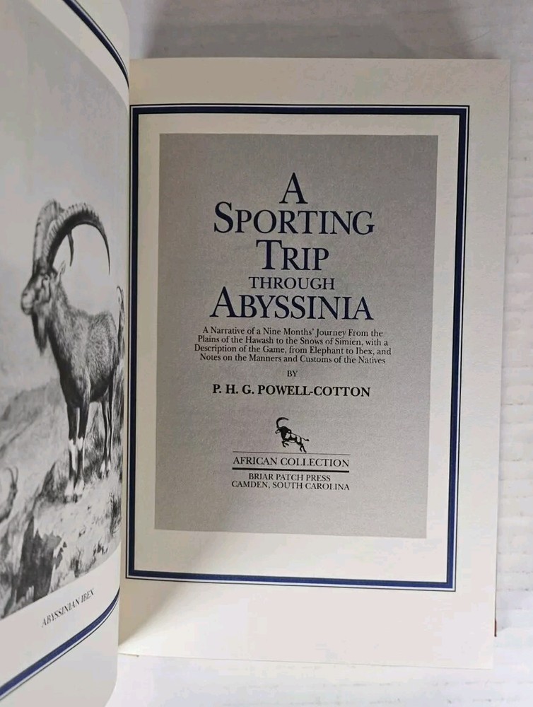 "A Sporting Trip Through Abyssinia" by P. H. G. Powell-Cotton is a collector's edition book published by Kessinger Publishing in 1990. This hardcover book, measuring 9.5 inches in length and 6.5 inches in width, features 521 pages of literary collections. The book is illustrated and leather-bound, making it a valuable addition to any book collection. Written in English by the author, Percy Horace Gordon Powell-Cotton, this book offers readers a glimpse into the author's journey through Abyssinia, providing a mix of sporting adventures and cultural insights. A Sporting Trip Through Abyssinia By P. H.G. Powell-Cotton Ships out ASAP Ships Media Mail USPS Thanks for looking! Enjoy.
