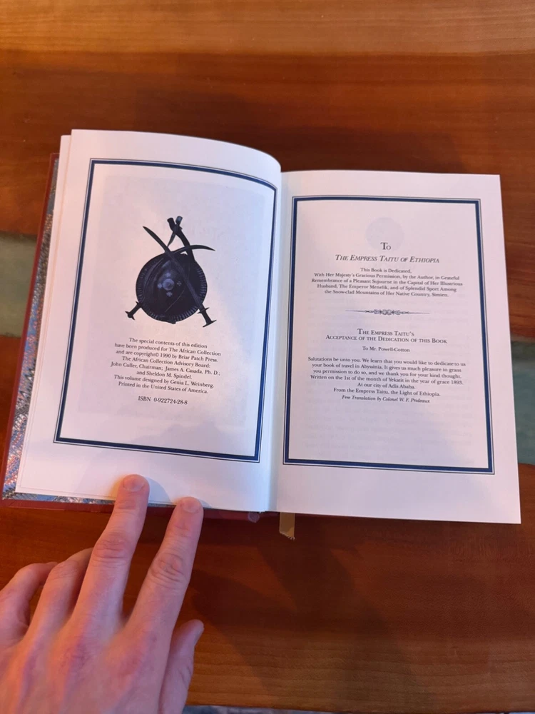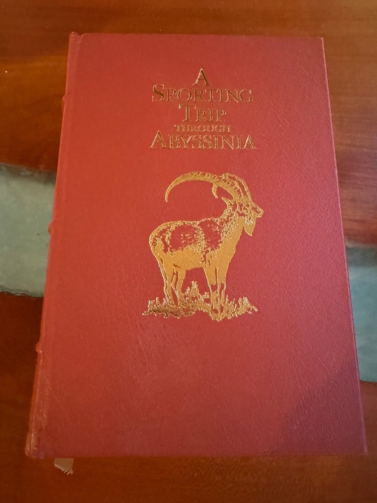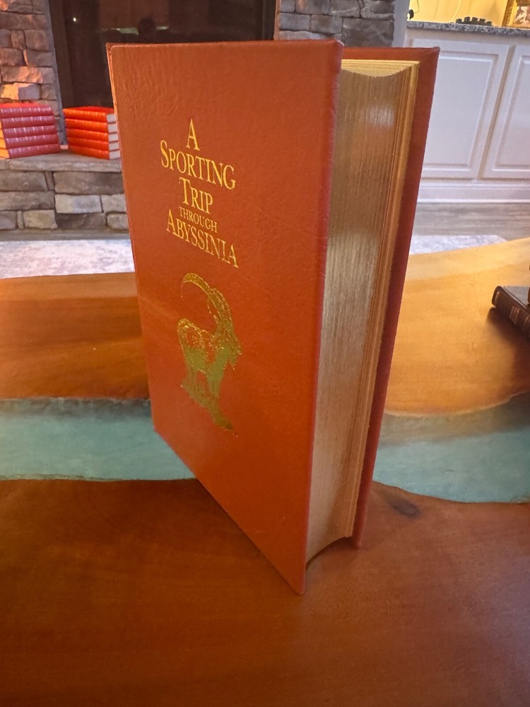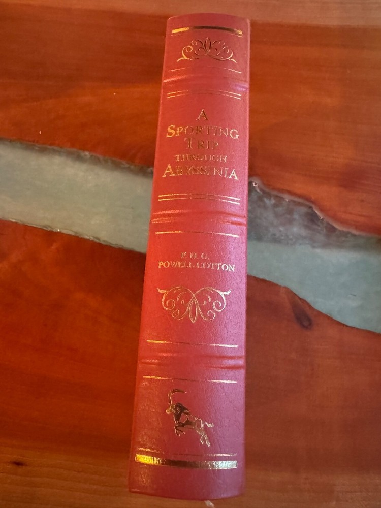 A Sporting Trip Through Abyssinia by Major P.H.G. Powell-Cotton – Deluxe Leather-Bound Edition This is the highly collectible Briar Patch Press leather-bound edition (1986) of A Sporting Trip Through Abyssinia by Major P.H.G. Powell-Cotton, a foundational work in African big game hunting and exploration literature. Elegantly bound in leather with gold gilt page edges, this edition is both attractive and durable-a standout addition to any sporting or Africana library. Powell-Cotton’s narrative documents his remarkable nine-month, 1,500-mile expedition across Ethiopia at the turn of the 20th century, filled with adventure, discovery, and big game hunting. Condition: Excellent. Features: Full leather binding, gold gilt page edges, illustrated with photographs, fold-out map, 531 pages. Collector’s Note: Highly sought after by collectors of African exploration and hunting classics. A distinguished and beautiful volume for any collector or enthusiast of African adventure. Detailed Contents Summary “A Sporting Trip Through Abyssinia” by Major P.H.G. Powell-Cotton is a classic account of one of the earliest and most ambitious sporting expeditions into Ethiopia (Abyssinia) at the turn of the 20th century. The book chronicles Powell-Cotton’s nine-month journey, covering over 1,500 miles from the plains of the Hawash River to the snow-capped Simien Mountains. Throughout the expedition, Powell-Cotton and his party faced challenging terrain, unpredictable weather, and encounters with both wildlife and local peoples. The narrative is rich with vivid descriptions of hunting big game-including elephant, oryx, ibex, and other rare species-set against the backdrop of Ethiopia’s dramatic and varied landscapes. Powell-Cotton provides detailed accounts of his hunting methods, the habits of the animals pursued, and the logistical complexities of organizing such a journey in an unfamiliar land. The book also offers valuable ethnographic insights, with observations on the customs, dress, and daily life of the Ethiopian people encountered along the way. Illustrated with numerous photographs, A Sporting Trip Through Abyssinia stands as the first comprehensive and graphic account of Ethiopia’s terrain, wildlife, and cultures by a Western explorer. Powell-Cotton’s engaging storytelling and meticulous record-keeping make this work a cornerstone of African sporting and exploration literature. This edition is a leather-bound, gold gilt page edge copy in excellent condition-a truly distinguished and collectible volume for any Africana or big game hunting library.