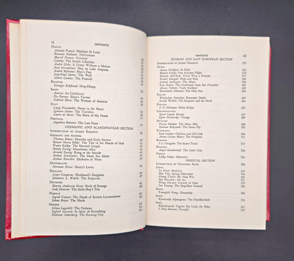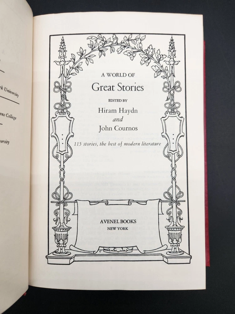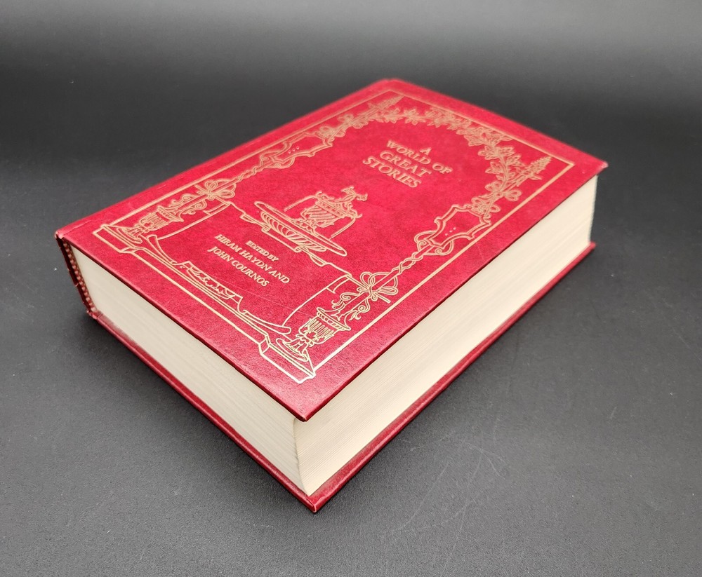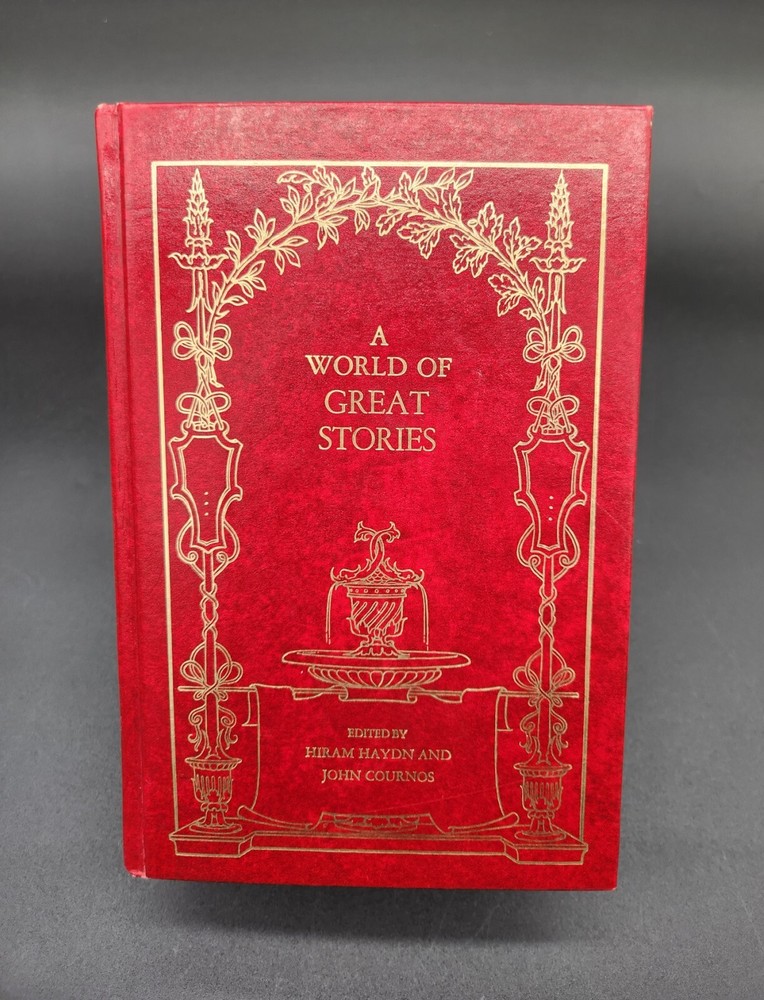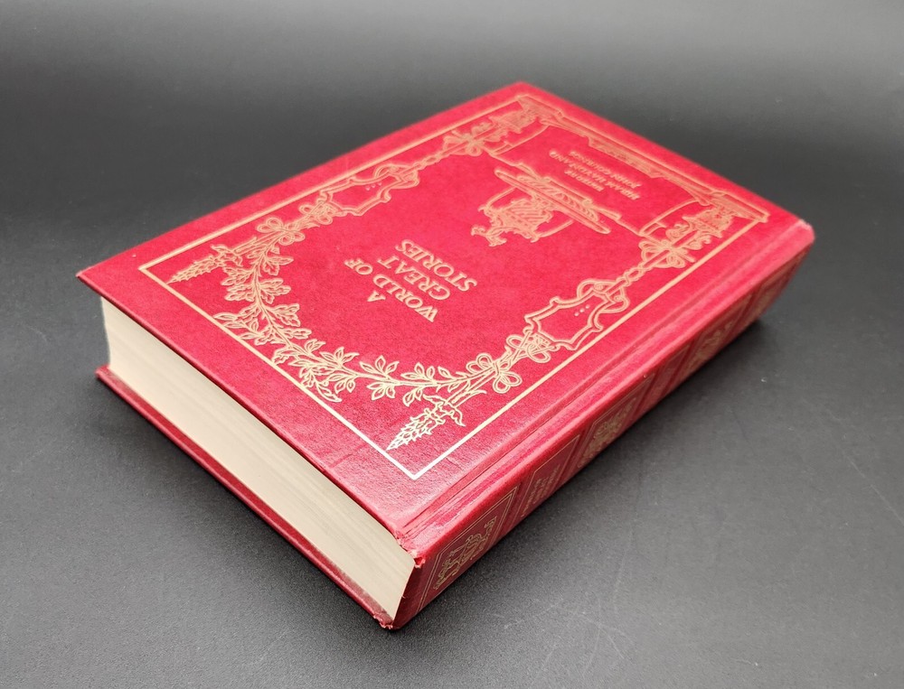 A World of Great Stories Vintage Short Story Collection 1947 Leather Hardback 115 stories the best of modern literature 1947 950 pages Red leather hardback cover Writing on inside cover, but no other writing. No rips, no stains. See photos. Smoke free, Pet free