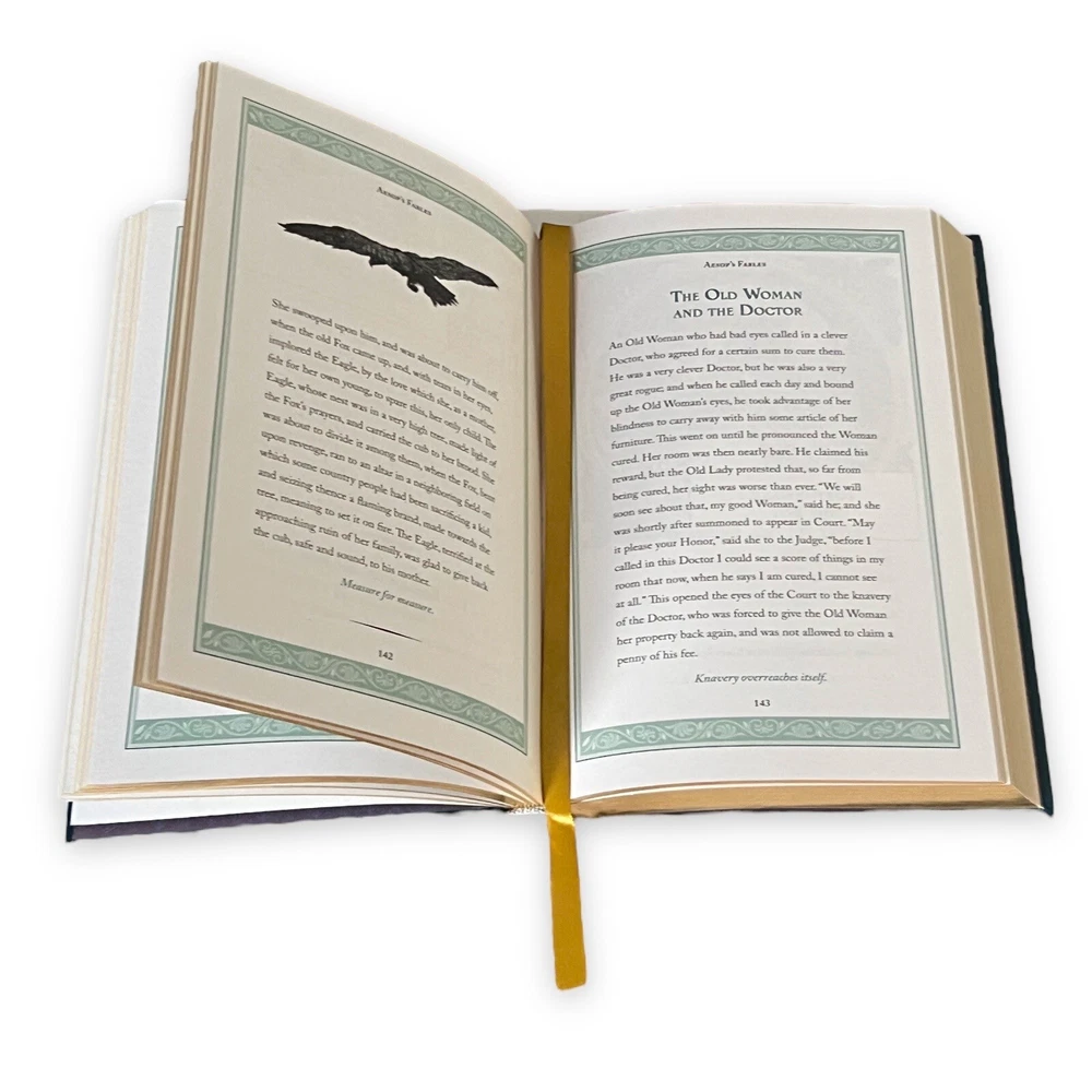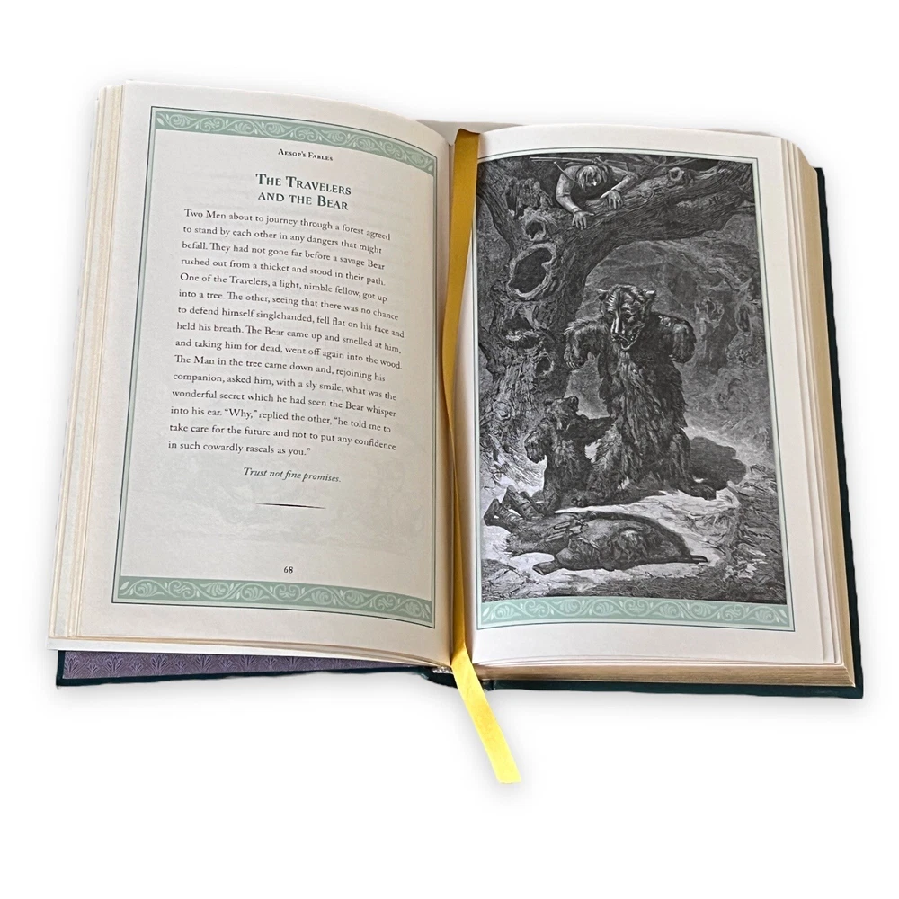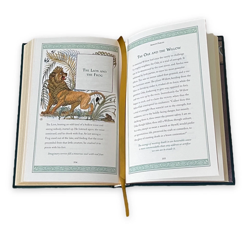 Aesop's Illustrated Fables features more than 400 fables, beautifully illustrated with engravings and color plates by Arthur Rackham, Walter Crane, and Ernest Griset. It includes all of the classic fables whose titles and morals have become part of our common cultural vocabulary, among them - "The Boy Who Cried Wolf," "The Tortoise and the Hare," "The City Mouse and the Country Mouse," "The Dog in the Manger," and "The Fox and the Grapes." Part fairy tale, part fantasy story, part parable with a lesson to impart, each of these fables is a polished gem of storytelling craft whose luster never dulls. This Book features authoritative texts in exquisitely designed bonded-leather binding with distinctive gilt edging and an attractive ribbon bookmark. Decorative, durable, and collectible, these books offer hours of pleasure to readers young and old, and are an indispensable cornerstone for every home library. Author- Aesop Hardcover Leather Editions Dimension- 6.4 H x 9.4 W x 1.4 D