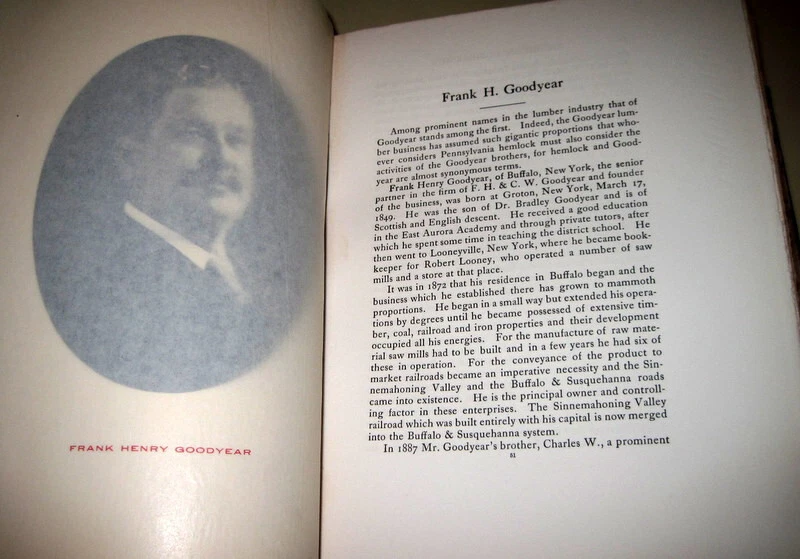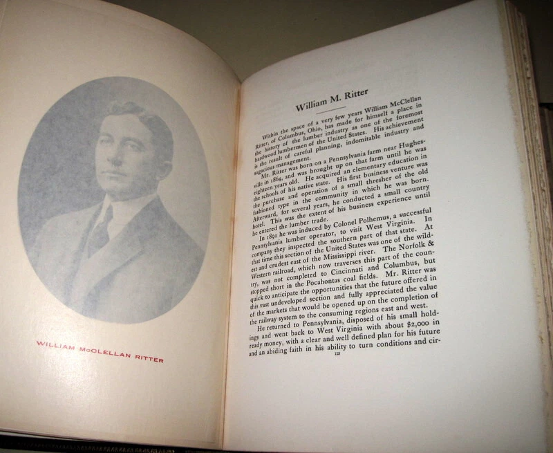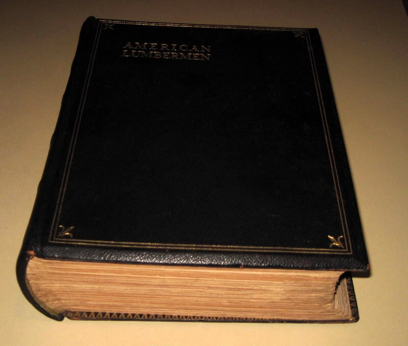 American Lumbermen - The Personal History and Public and Business Achievements of One Hundred Eminent Lumbermen of the United States, Pub by The American Lumberman, 1905, 414 pages, a large thick volume, about 9 x 11. Almost 3 inches thick. Bound in publisher's gilt ruled, brown leather. Top edge gilt . Marbled end pages. Biographies of the movers & shakers of the logging & lumber industry at that time. Each entry seems to have 3 or 4 pages, including a full page photograph. Very good condition. Binding tight. Covers look great. Heavy media rate postage is $12 in the United State. It will; be well packed and shipped in a sturdy box.