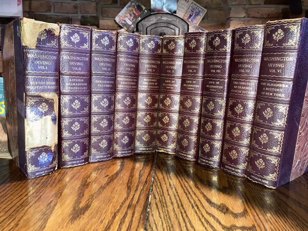 ANTIQUE 10 VOL BOOK COLLECTION: Washington Irving 10 Vol Edition Deluxe Leather. All in great condition besides the binding of Volume 1. Books have hardly been opened....