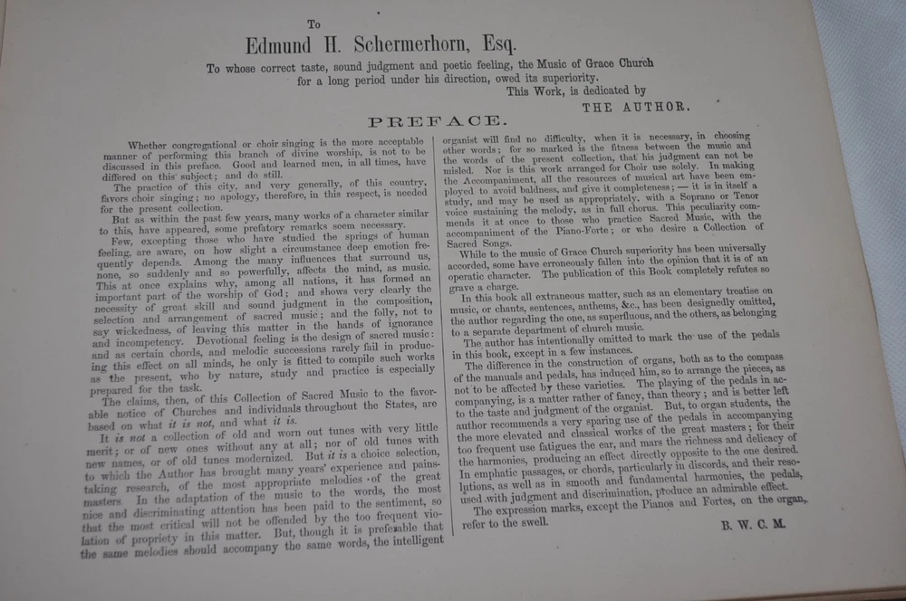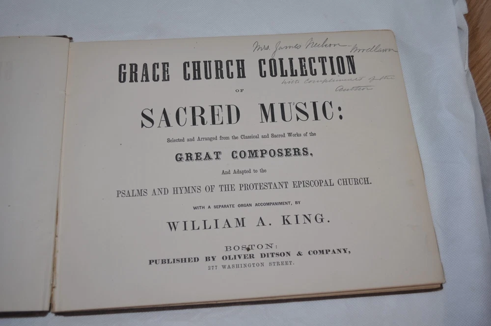 WELCOME TO wants-n-wishes We are offering this antique hardbound 1852 copyright GRACE CHURCH COLLECTION of Sacred Music: with selected sacred works of Great Composers that is adapted to the psalms and hymns of the protestant Episcopal Church . Has a separate organ accompaniment by William A King. Contains 57 pages. Book is hard bound edition and in Good TO VERY GOOD vintage condition with crisp pages and normal usage noted on tabs, splines, and pages. There is some writing in pencil on inside page Well bound with some separation at bottom.. . (see photos). ** Visit My eBay Store: wants-n-wishes Browse our store to See our other AWESOME vintage appliances, CARLISLE & ETCETERA womens clothing, cool western shirts and boots, glassware,and misc. J-5411 FROM A SMOKE FREE HOME.... SHIPPING : $$ 4.00 shipping and handling for the lower 48 states, (International rates will be higher).. We accept PAYPAL PLEASE READ TERMS AND PAYMENT METHODS BEFORE PURCHASING Winner will receive an "ebay INVOICE" from us. We attempt to accurately and honestly describe and photograph our merchandise and most items are generally used or vintage items and are sold "AS IS" so "ALL SALES are FINAL", UNLESS grossly misrepresented and at that time a REFUND for the Buy Price will be refunded..Buyer is still responsible for the shipping and Insurance.. PLEASE e-mail us EARLY if you have Questions.. INTERNATIONAL buyers are WELCOME Here.. THANKS FOR LOOKING AND PLEASE CHECK BACK AS WE USUALLY HAVE SOMETHING FOR EVERYONE. wants-n-wishes