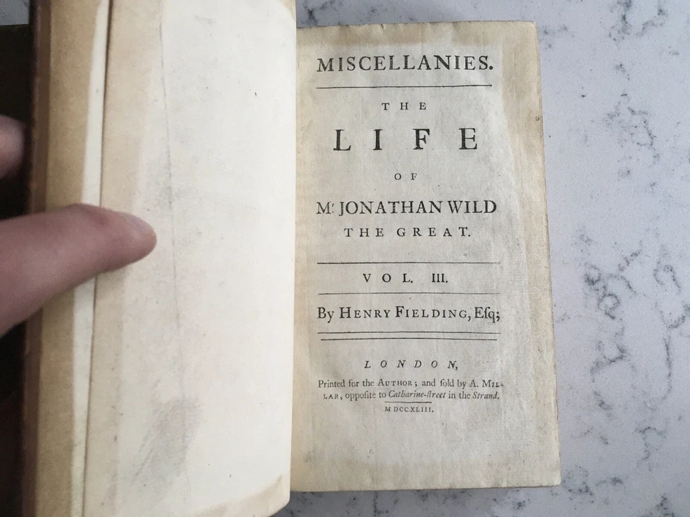 Henry Fielding, Miscellanies (A. Millar: 1743) 3 vols. 6.5/8 inches high Previously acquired from Arthur Swann, New York.