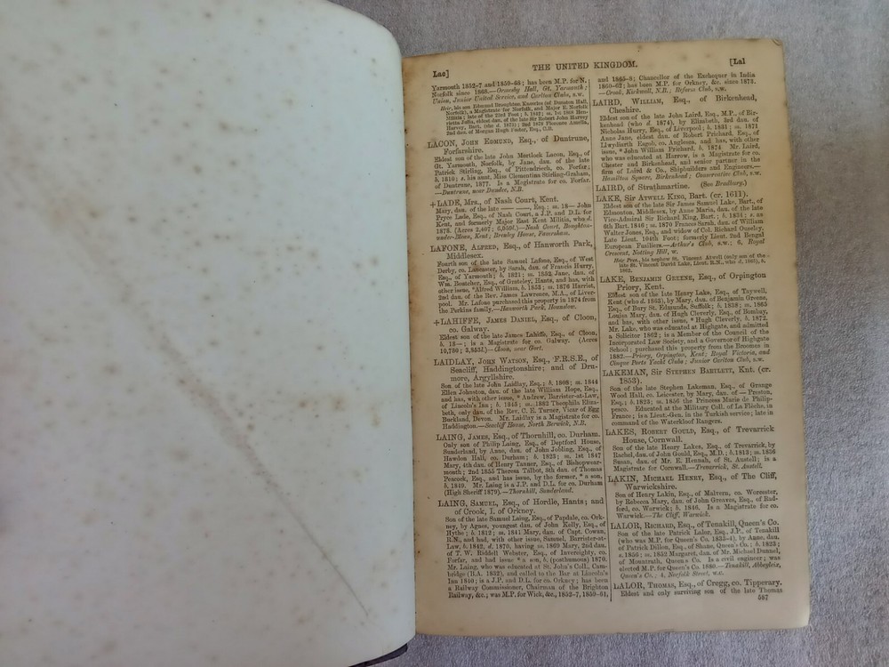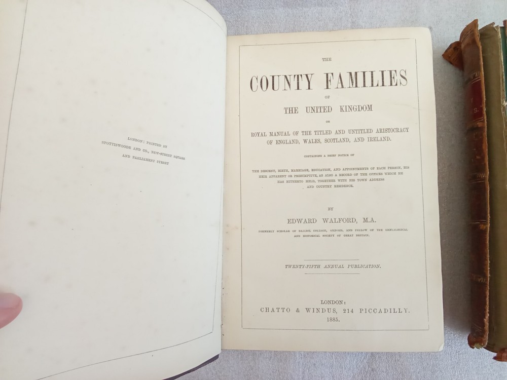 Edward Walford, The County Families of the United Kingdom (1885) 2 vols. 10 inches high