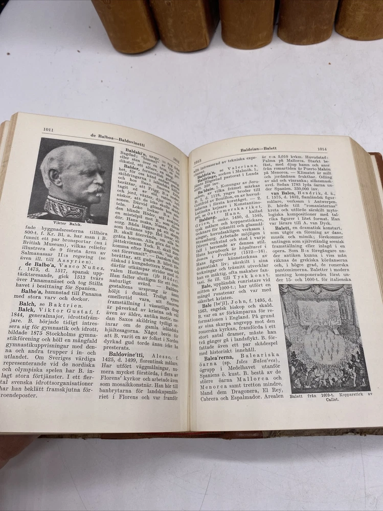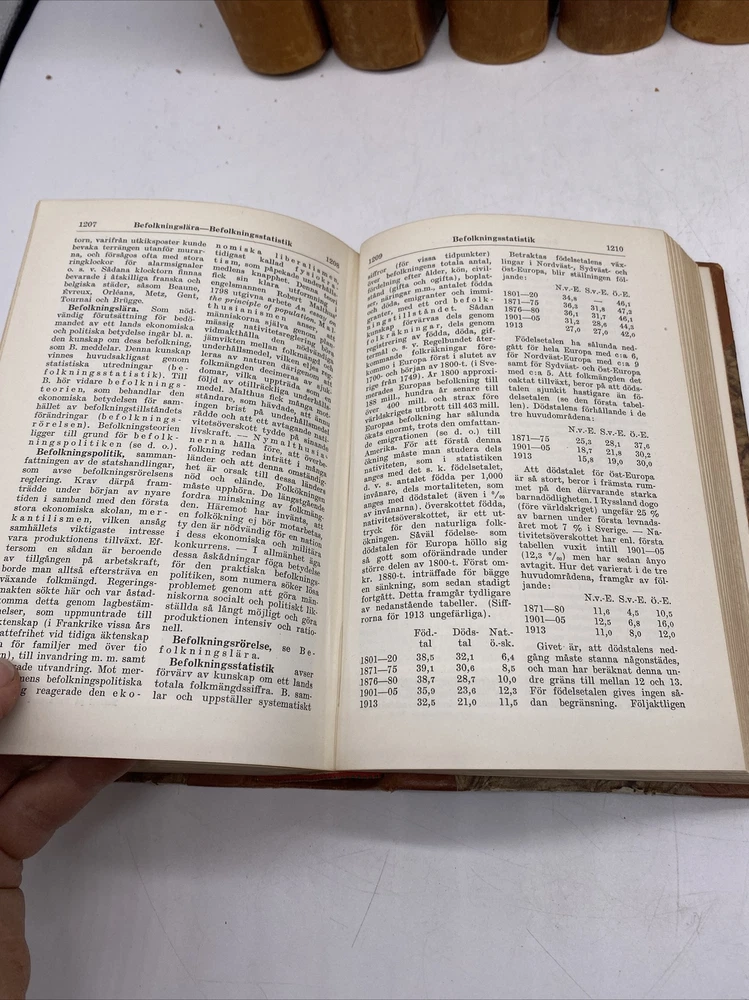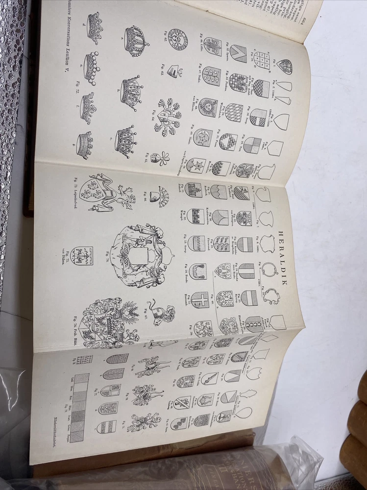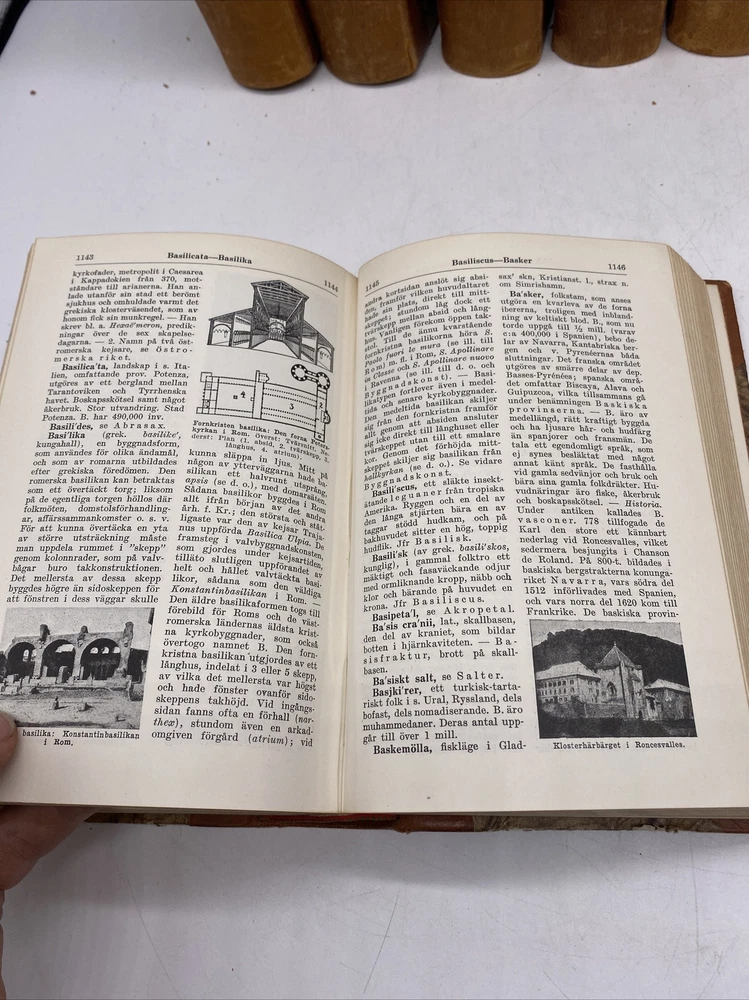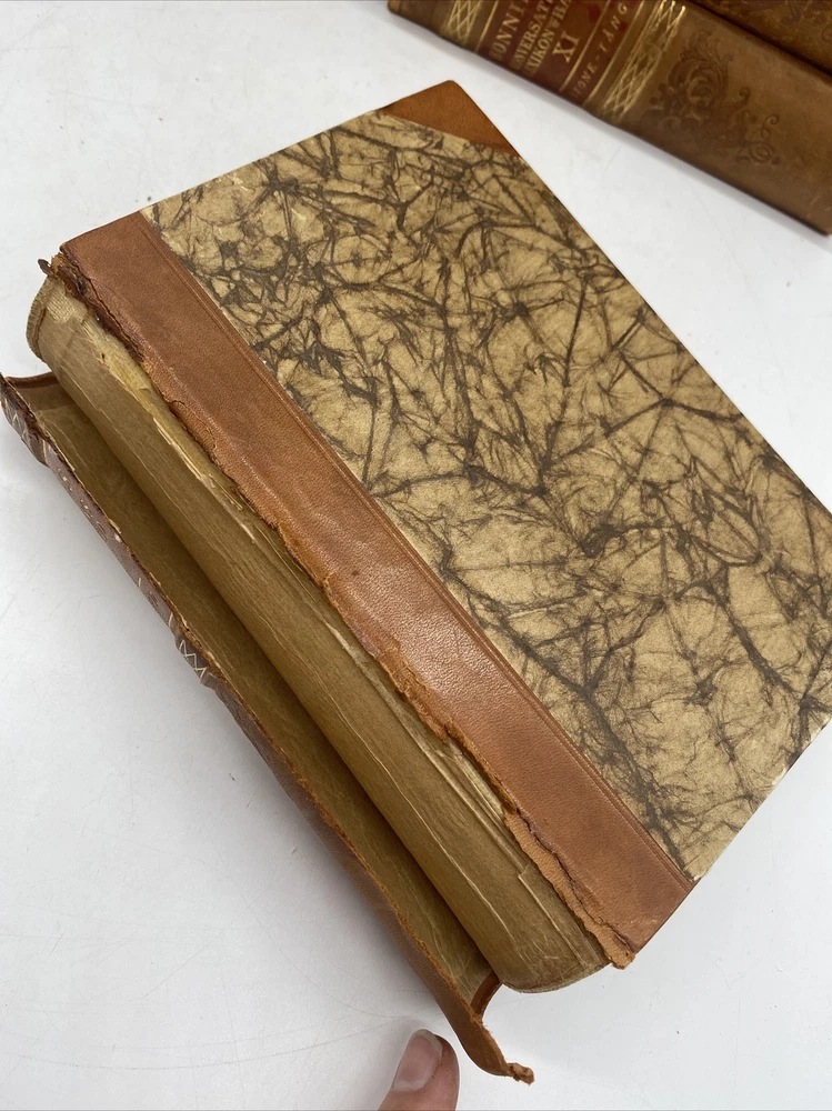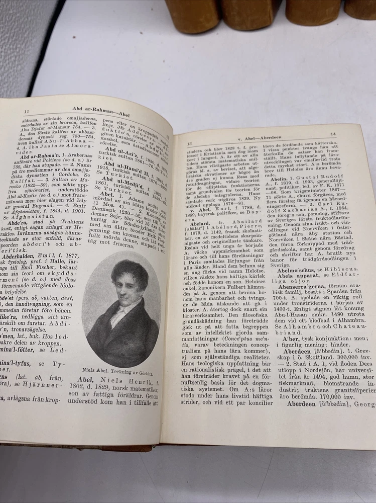 ANTIQUE BOOKS 1922-1928 LEATHER BONNIERS KONVERSATIONS LEXICON 12 VOL SET PUBLISHED IN THE SWEDISH LANGUAGE. THE SPINES AND CORNERS ARE LEATHER AND THE FRONT AND BACK COVERS ARE MARBLE BOARD. THIS IS THE TYPE OF SET OF BOOKS SAID TO BE IN THE OFFICE OF HEADMASTER ALBUS DUMBLEDORE AND WIZARD REMUS LUPIN IN HARRY POTTER AT HOGWARTS CASTLE. PLEASE FEEL FREE TO ASK ANY QUESTIONS AND WE WILL TRY TO ANSWER THEM FOR YOU. SEE OUR OTHER LISTINGS FOR ANTIQUE AND RARE BOOKS. Also, Please see all photos as they are considered part of the description. We ship to the lower 48 states of USA only. Thank you for your interest.