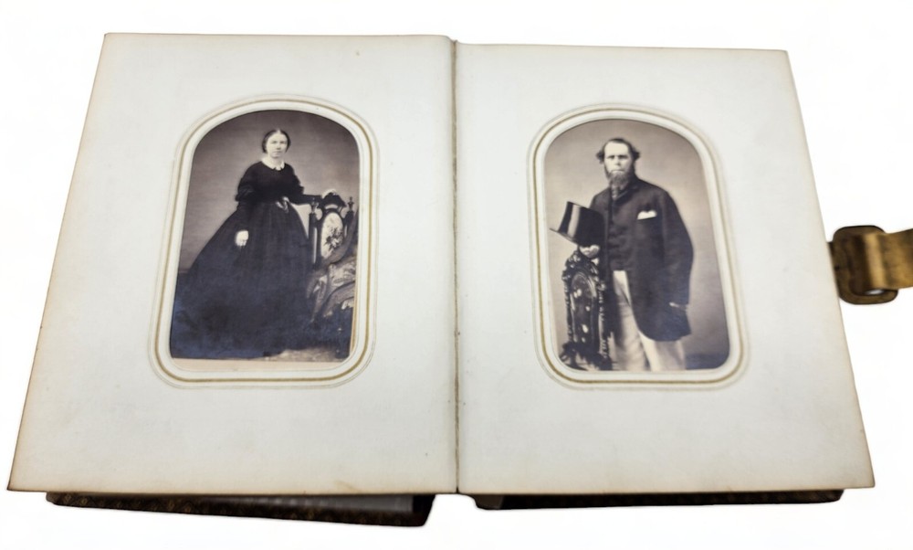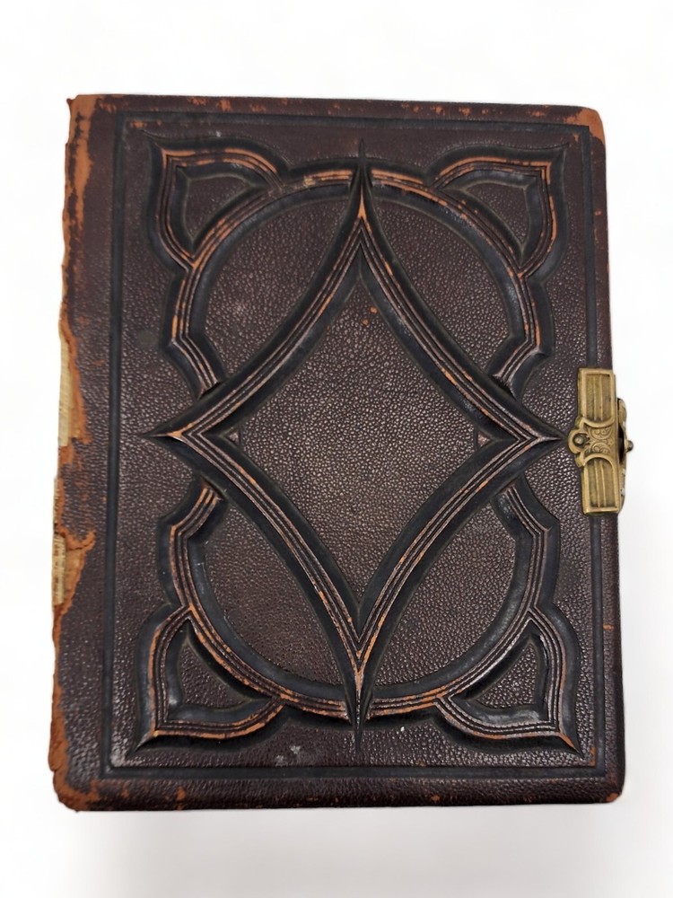 ANTIQUE PHOTO ALBUM MAKER ~ Unknown CONDITION ~ wear on the album as can be seen, photos are in great condition, there are 25 photos in the book, a s shown, please refer t o pictures before bidding SIZE ~ 5" x 6 1/4" WEIGHT ~ 1 1/2 lb. MARKED ~ as shown MONOGRAM ~ No If you have any que stions, feel free to ask. Thank you, Jeanie