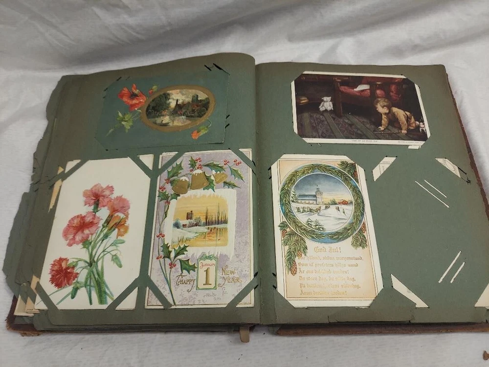 Old post card album with 82 cards. The book is shot ! See photos. Ask questions. Selling as is, no returns please. Free shipping inside the 48 states....