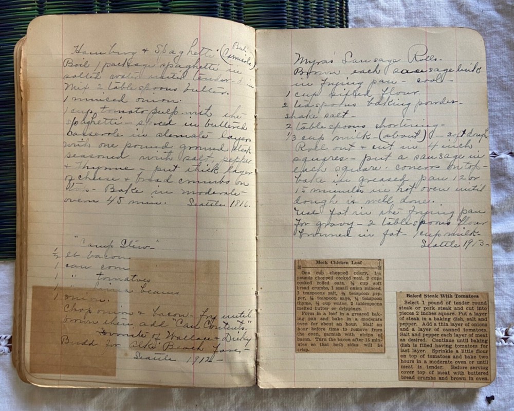 FULL OF RECIPES,mostly hand written Plus typewritten ones and newspaper clippings. I believe it is from the north east. there is a mention of Seattle and Portland. in fair/good vintage condition (spine breaking),Please email me with any questions. Smoke free home. I am happy to combine shipping. thank you