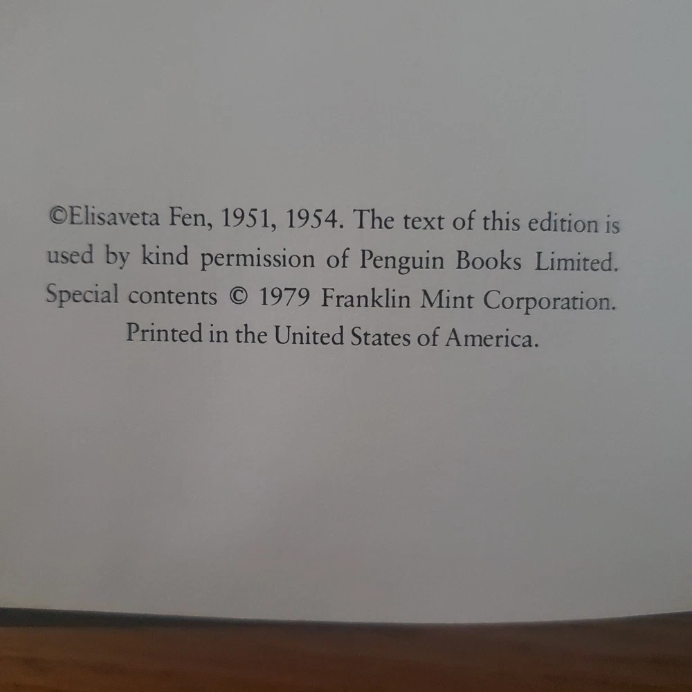 Up for sale is a hardcover leather bound copy with gold gilded edges of "Greatest Plays", written by Anton Chekhov and published by the Franklin Mint Library in 1979. As seen in the photos, the book is in good overall condition. A great find for any literary buff. Shipping is $6.95 via US Postal Service Media Mail within the USA. Please take a look at my other listings of literary masterpieces published by the Franklin Library to add to your collection. Buy with confidence. 20+ year eBay member with 100% positive feedback. Please let me know if you have any questions.