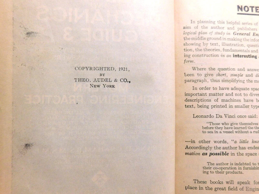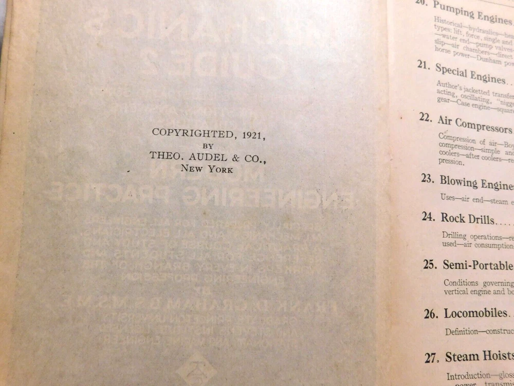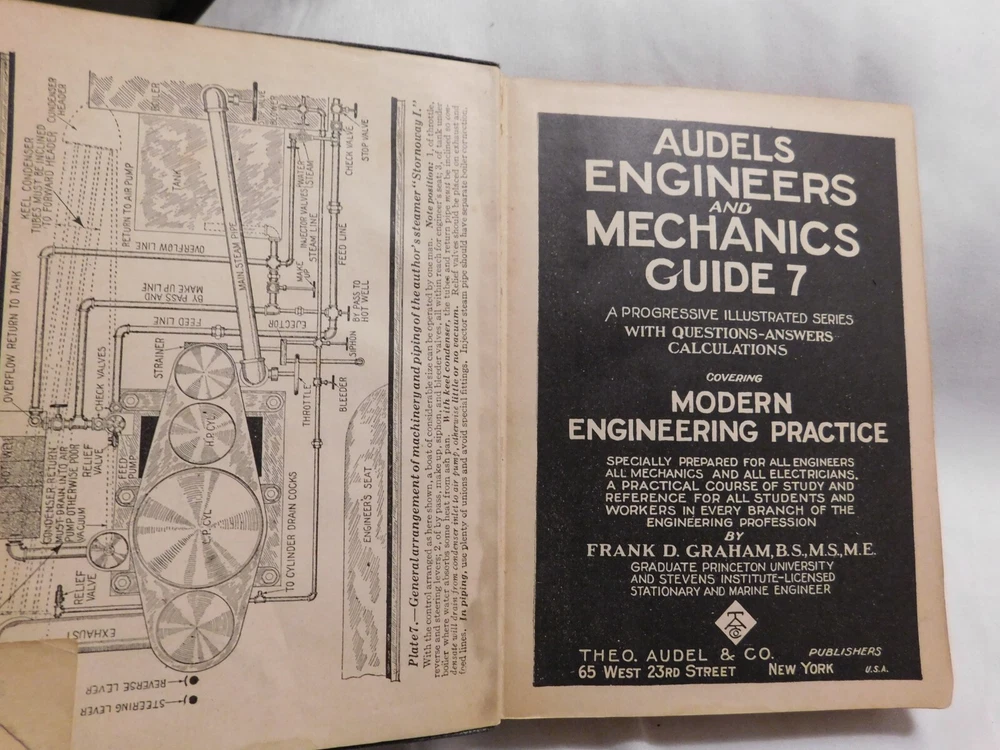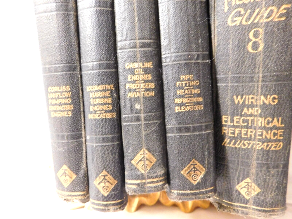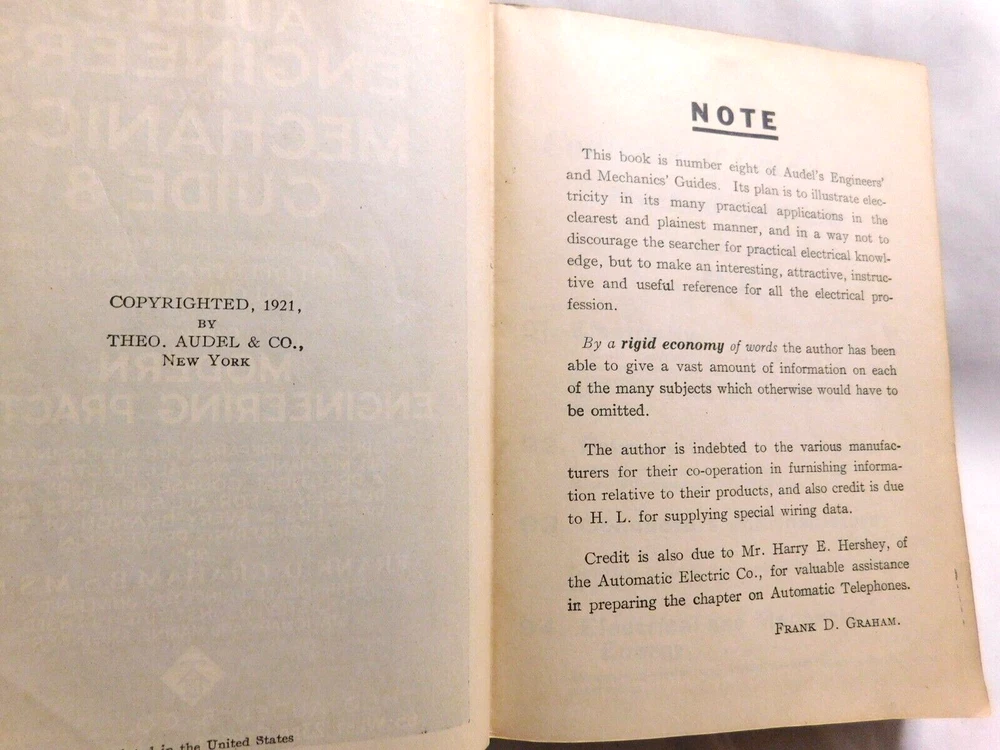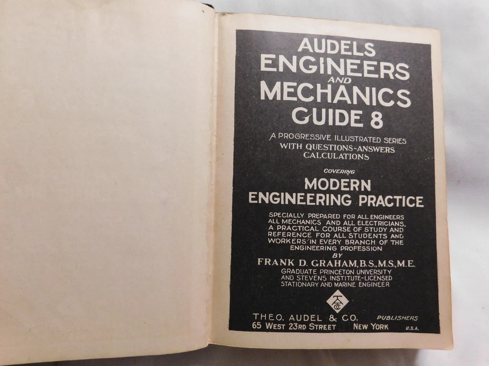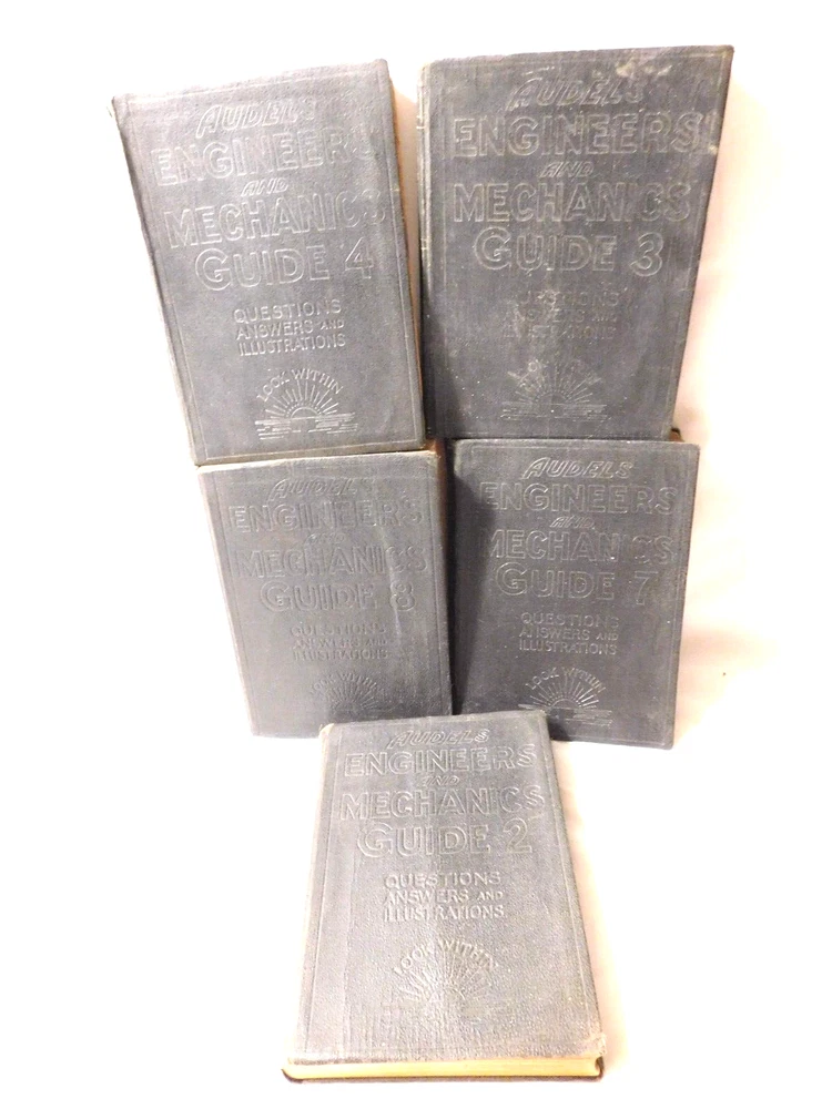AUDELS Engineers and Mechanics Guide 1921 Lot of Five Volumes 2, 3, 4, 7 and 8 - all are pre-owned - all have signs of wear to the front/back cover/spine - some tears on the edges/corners also. Binding is loose/cracked but no loose pages. Yellowing/spotting some marks on all. Volume 4 has pencil writing on inside front cover. Volume 7 has crayon marks on inside front cover and that next blank page. Tearing on the inside front and back covers - usual page creases. Some page tears mostly on the edges/corners - not where text is. Please see the numerous listing pictures for these conditions of books - thanks for looking.