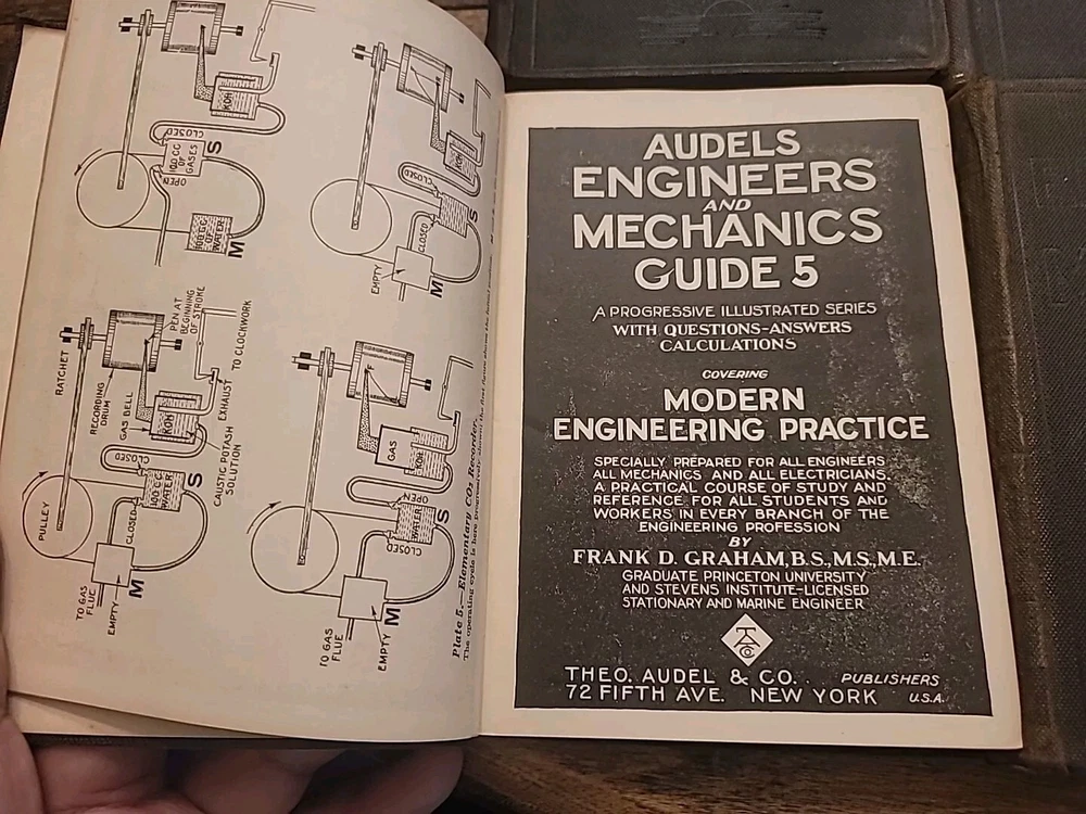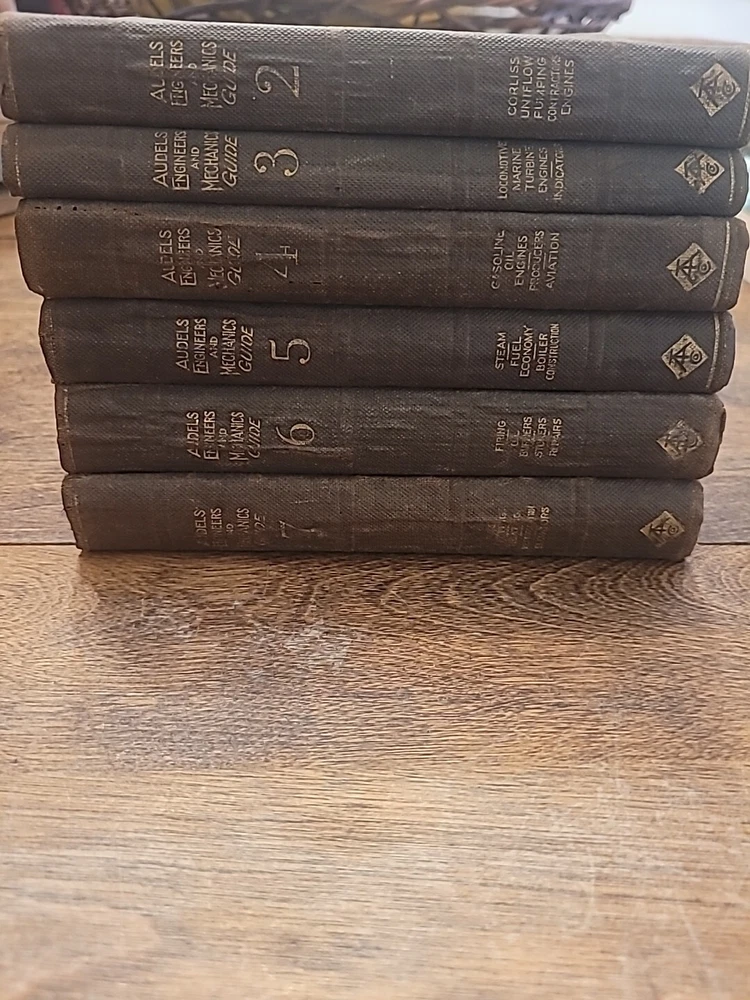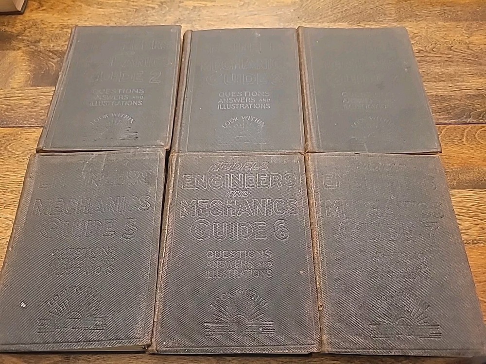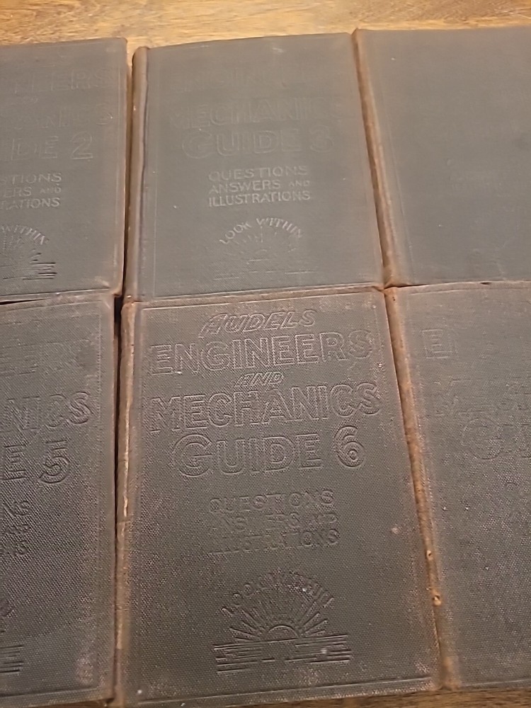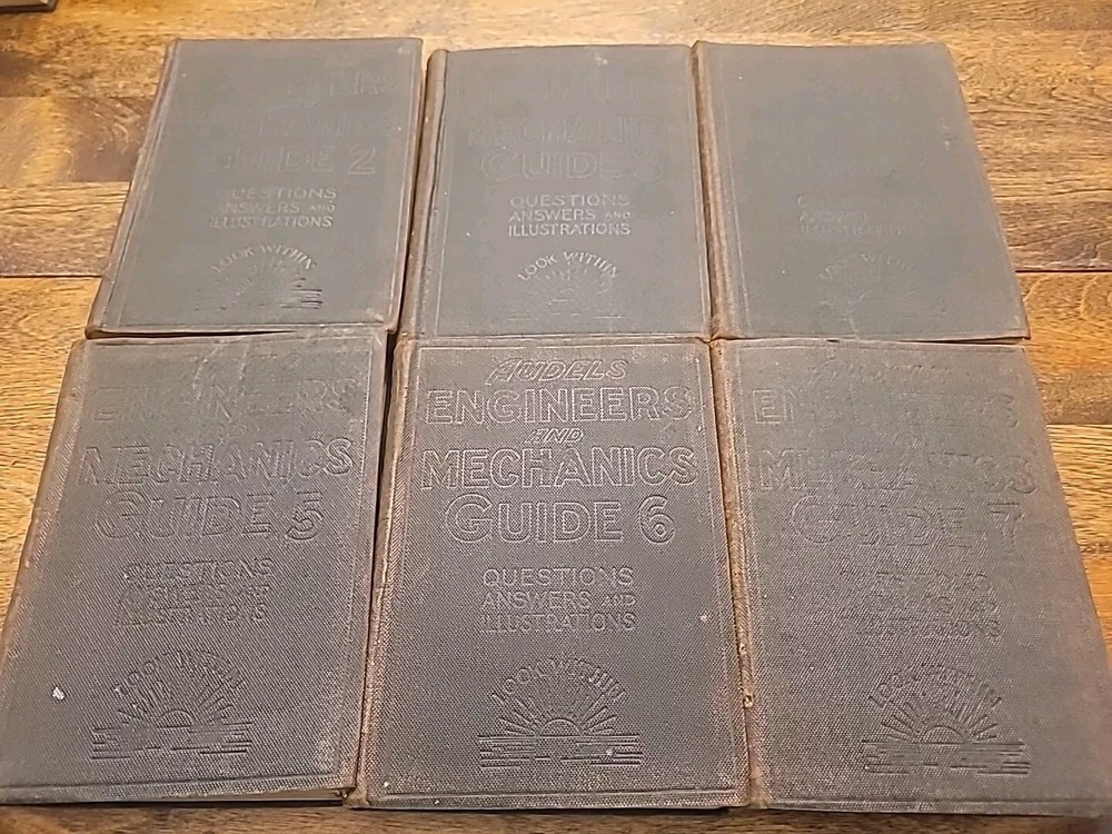 This lot of six volumes of AUDELS Engineer and Mechanics Guide from 1921 is a valuable addition to any collection. Each leather-bound book contains detailed information on engineering principles and mechanics, with illustrations to aid understanding. These original books were published by Theo Audel & Co. in the United States and are a great resource for students and professionals alike. The set includes volumes 2 through 7, covering a range of topics from science and medicine to engineering. While these books have been previously owned, they are in excellent condition and ready to be enjoyed by their new owner. Add these unique and informative books to your library today.