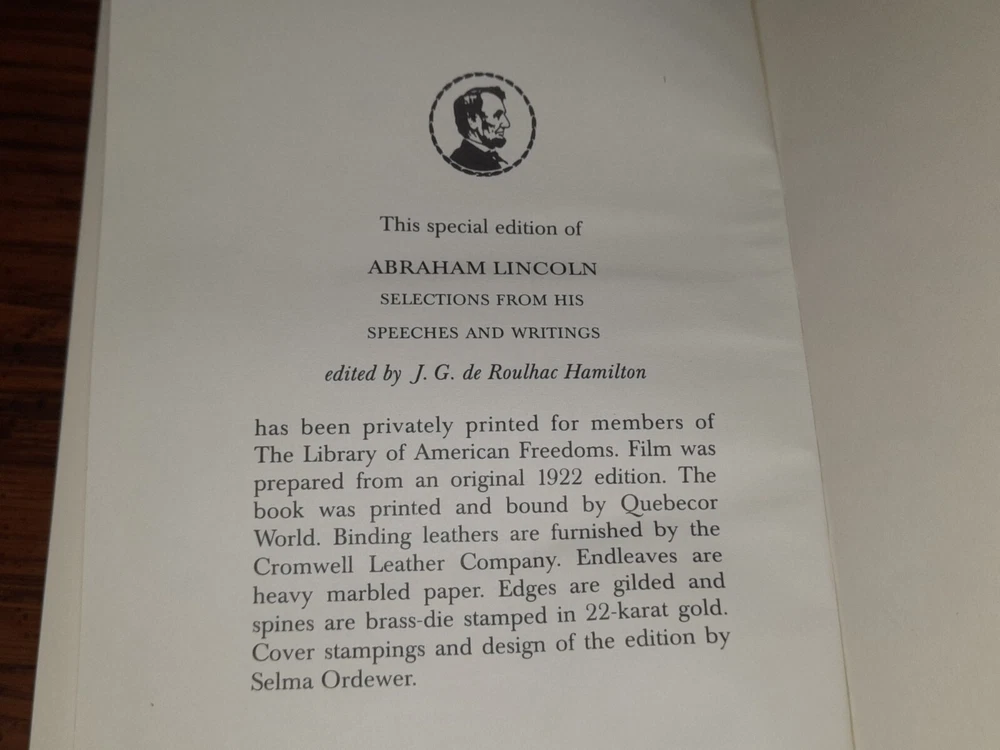 This leather-bound collection of Lincoln’s speeches and writings is stunning—gilt edges, decorative endpapers, and a beautifully crafted cover make it a timeless keepsake. The binding is tight, the text pristine, and Wayne La Pierre’s intro adds depth. Perfect for history lovers or as a refined gift. Shawn & Rebecca’s excellent service and combined shipping make it even better!