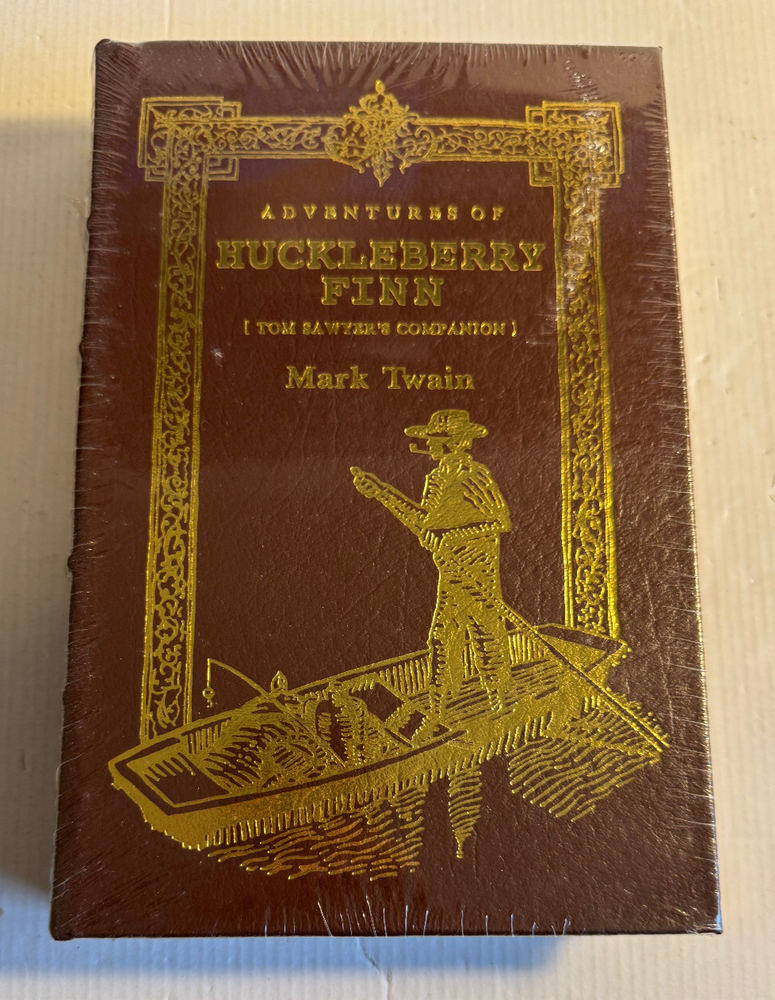 A nice vintage hardcover copy of Adventures of Huckleberry Finn (Tom Sawyer’s Companion) by Mark Twain (Easton Press). Leather bound boards. Gold gilded page edges. Condition Notes: “New” condition: Still sealed in the original factory shrink wrap with a couple small tears in the shrink, never opened or read - All books ship from a nonsmoking home - The books you see are the books you will receive Shipping - Shipping will be via USPS Media Mail. I usually ship with books wrapped in bubble wrap inside padded envelopes or small boxes. - I am happy to combine shipments. Please contact me for a shipping quote if you are interested in multiple items. If you win more than one auction, please wait for a new invoice with a shipping adjustment before paying.