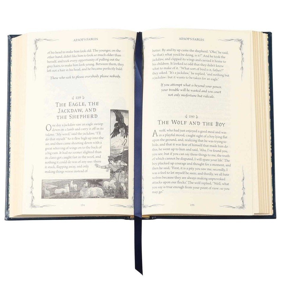 This illustrated collection includes hundreds of fables that have influenced our world for centuries. The stories attributed to Aesop, a slave and storyteller who lived in Greece around 620–564 BCE, were originally passed on through oral tradition before first being transcribed several centuries after his death. Many of these fables use animals as the main characters to convey deeper meanings and morals that have become ingrained in our cultural and personal belief systems, such as “The Goose That Laid the Golden Eggs,” “The Wolf in Sheep’s Clothing,” and “The Hare and the Tortoise.” This elegant leather-bound volume includes 487 fables, along with more than 100 illustrations by celebrated artists Arthur Rackham and Walter Crane. Aesop’s Fables is one of the world’s most well-known collections of stories, and has influenced thousands of other literary works. A scholarly introduction examines Aesop’s life and the oral tradition, providing readers with further insight into the world of the humble storyteller whose presence continues to touch us today.