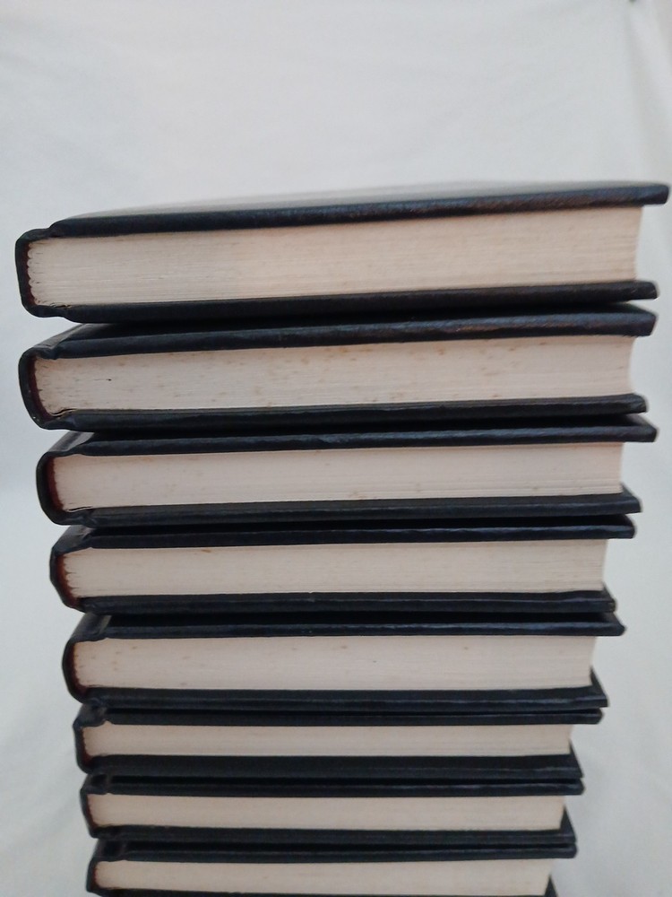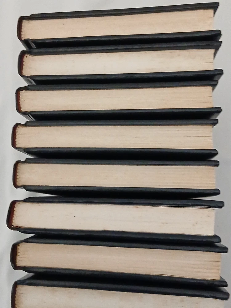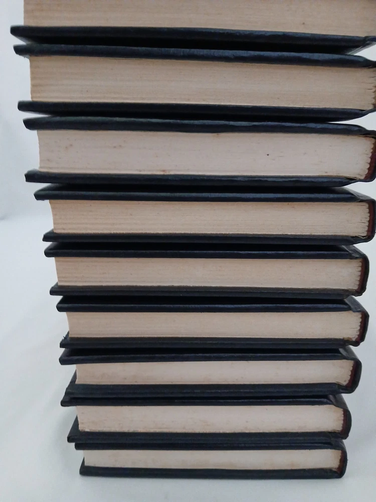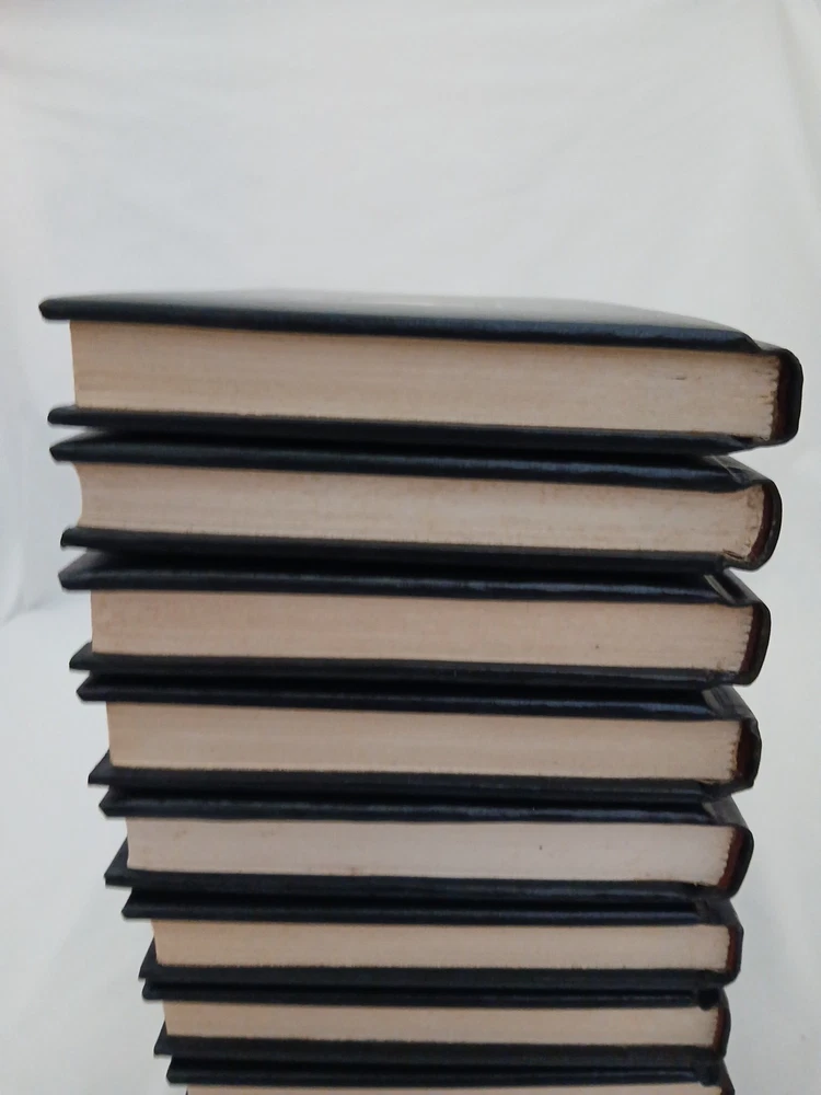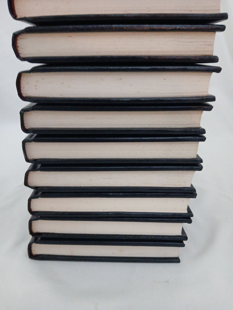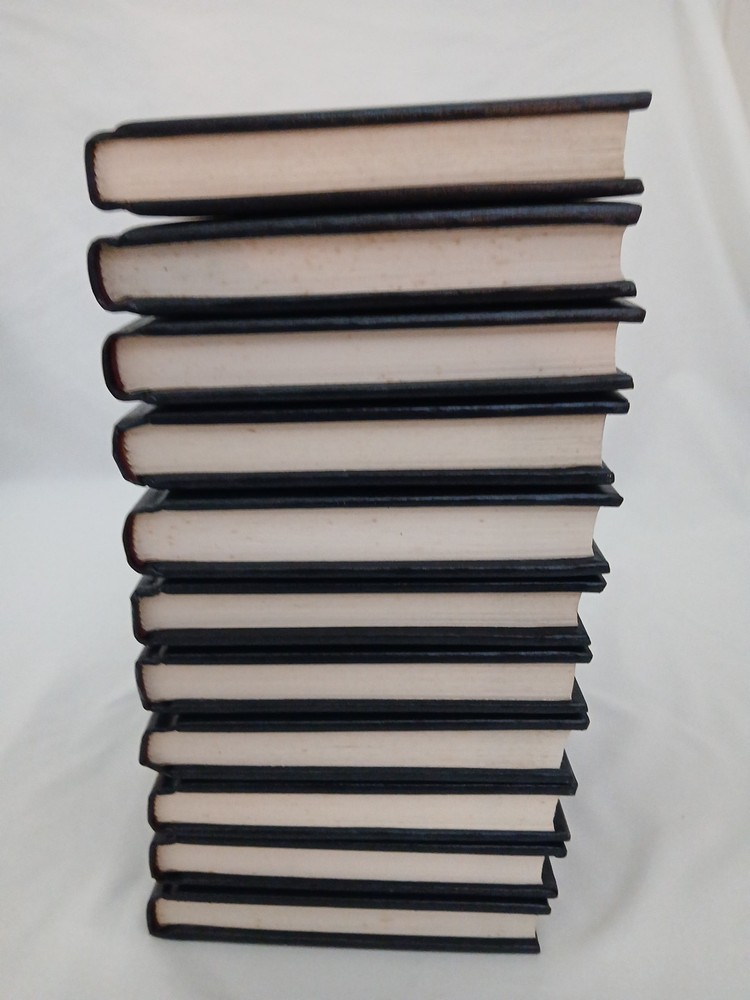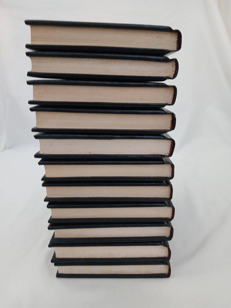 The Agatha Christie Collection Lot of 11 HC Bantam Black Leatherette. 1. Murder on the Orient Express 2. N or M? 3. The Under Dog and other stories 4. Taken at the Flood 5. The Murder of Roger Ackroyd 6. The Clocks 7. They Came to Baghdad 8. The A.B.C. Murders 9. Ordeal By Innocence 10. And Then There Were None 11. The Mystery of the Blue Train The faux leather is in very good condition and the books don't seem to have been read much if at all. They do have some spots/stains on ends/edges of paper so please view the pictures.