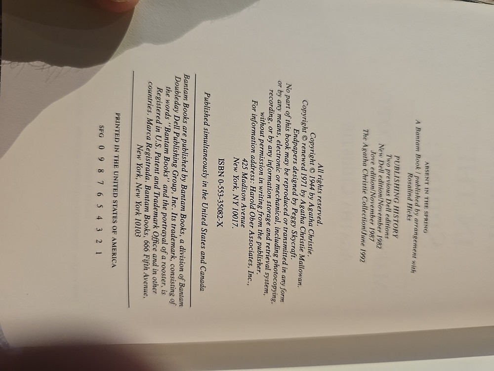 Agatha Christie Mystery Collection copy of Absent in the Spring by Mary Westmacott. Binding is tight. Please message with any questions....