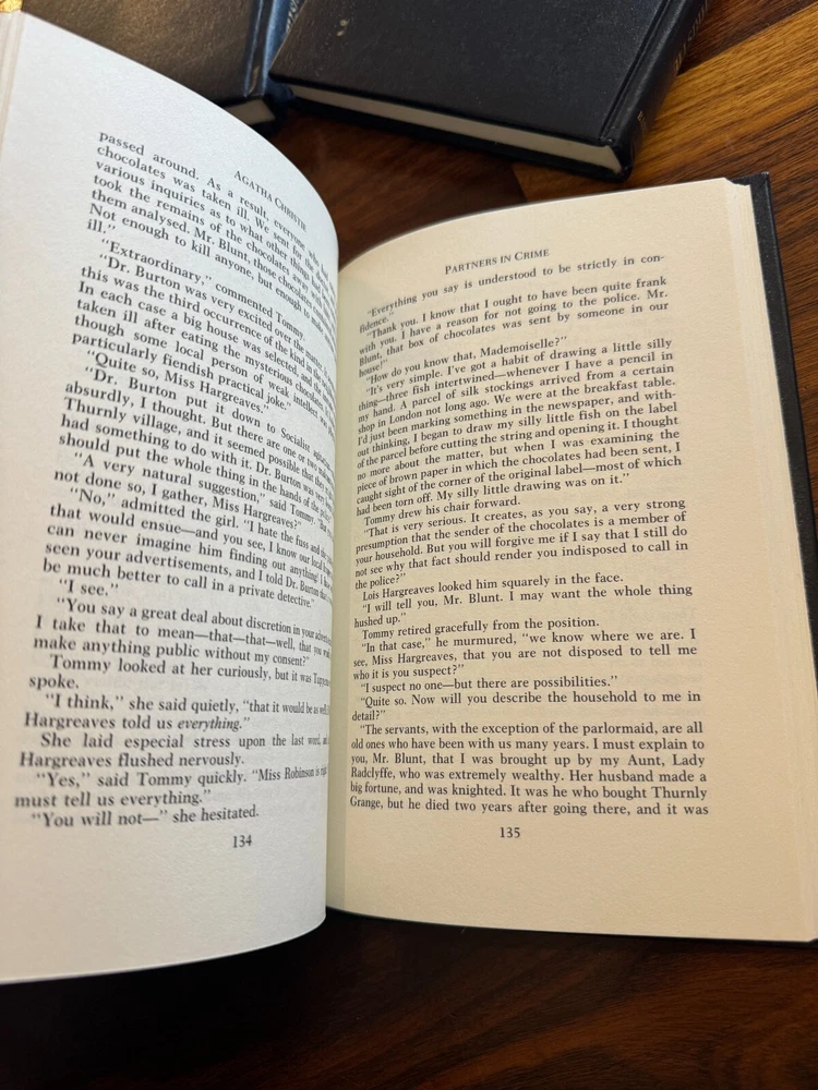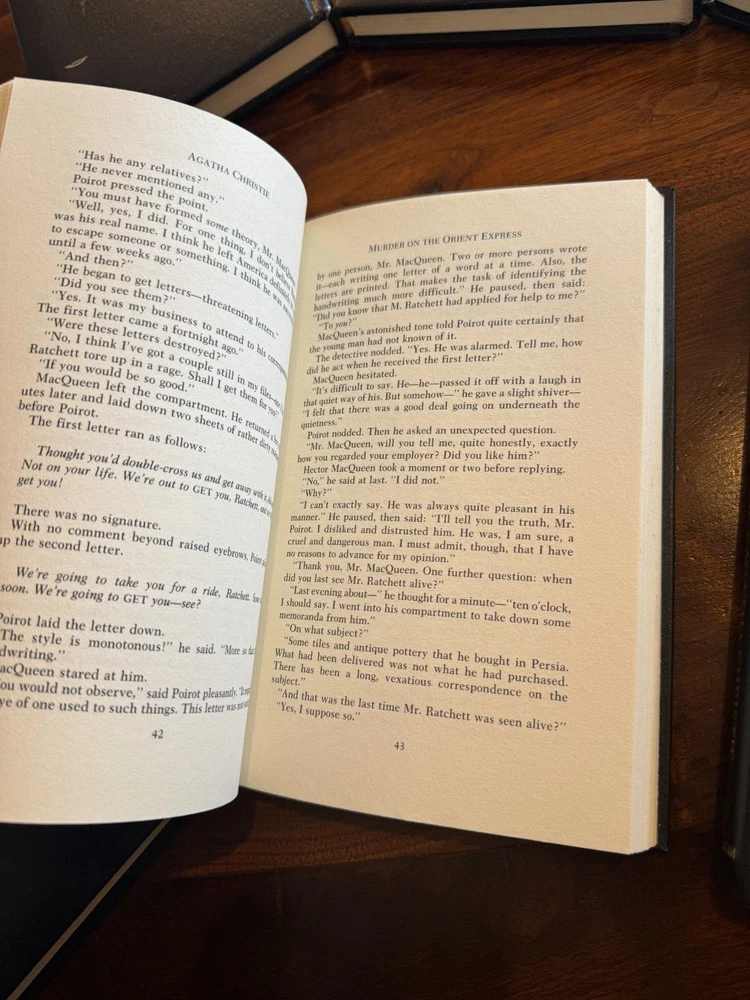 Agatha Christie Mystery Collection Leatherette Hardcover Bantam Books Lot of 7 These books are in good vintage condition--see photos. There is some light wear, light scuffs as any books their age, wear is mainly on a few of them on the titles/spine. Collection of 7 that includes: The Murder of Roger Ackroyd, Murder on The Orient Express, The A.B.C. Murders, Toward Zero, The Moving Finger, Evil Under The Sun and Partners in Crime. No writing on the pages inside. Refer to photos for exact condition. Thanks for looking!