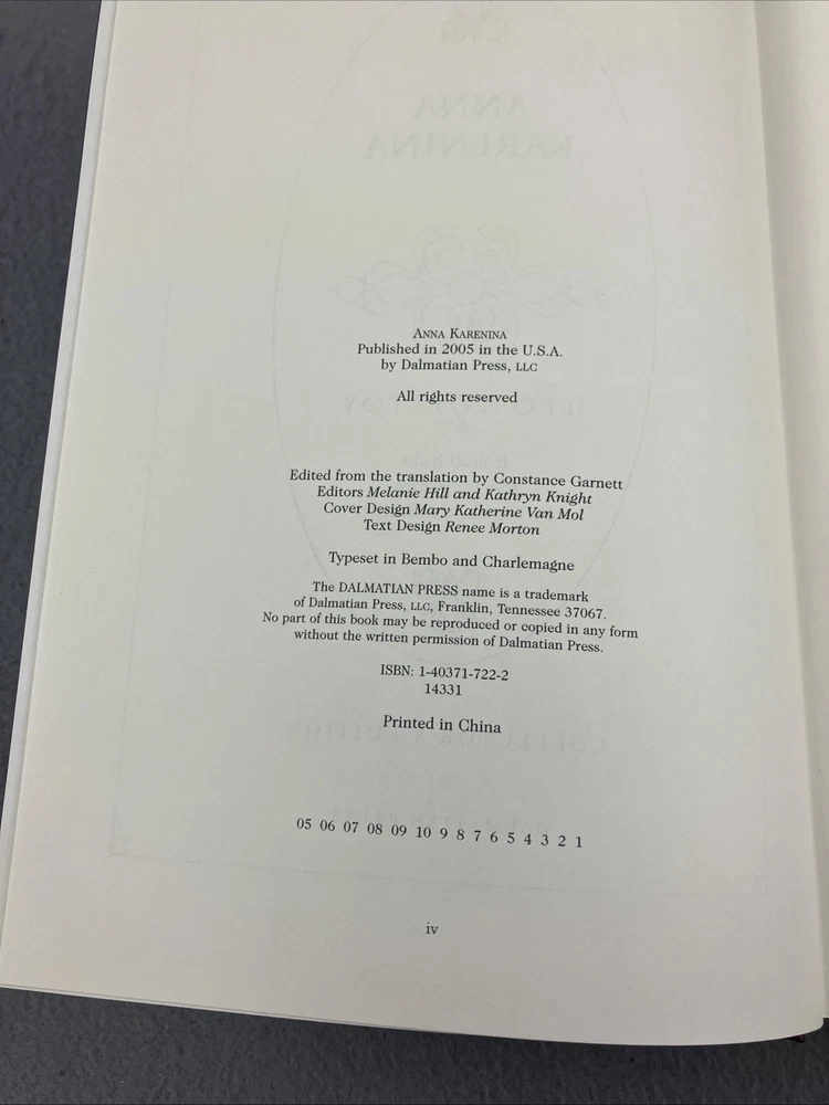 Anna Karenina by Leo Tolstoy Leather Bound Hardcover Dalmatian Press Acceptable Acceptable Condition -- book has some wear, clean copy/no markings on the inside (SEE PICS) *Item will be protected well for shipping and comes with a tracking number for confirmation.* I ship out items every day so expect a quick delivery!