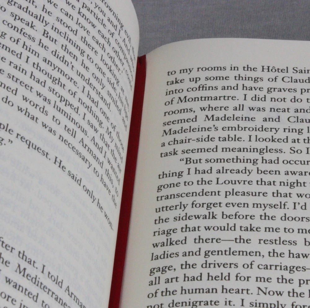 This deluxe hardcover edition of Anne Rice's *The Vampire Chronicles* is absolutely stunning! The gilt-edged pages add a luxurious touch, and the book is in excellent condition—just a minor edge ding on the back. Having the first three novels in one beautifully bound volume is perfect for fans and collectors. The stories of Louis, Lestat, and Claudia are timeless, and this edition does them justice. A must-have for any vampire literature lover!