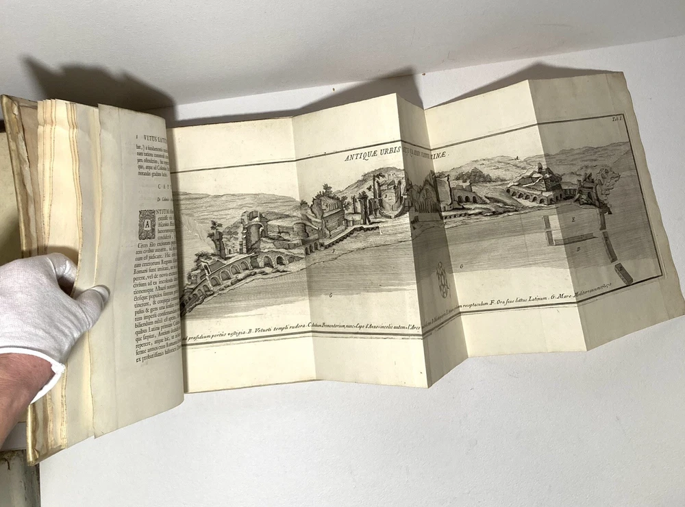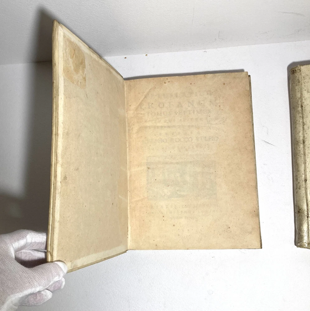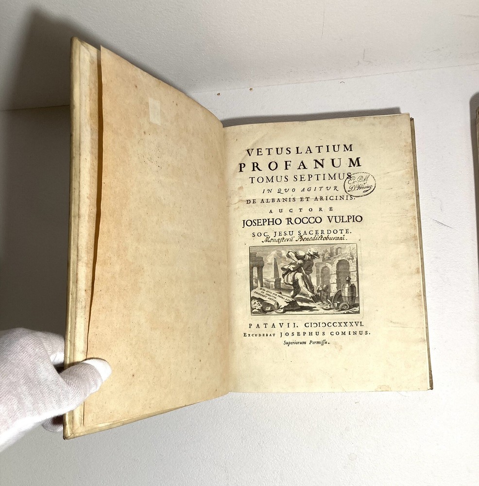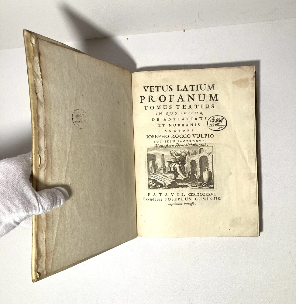 Antique 1st Edition Set of 2 Books from the 1700s both are Hardcover Leather Bound Books are Titled Vetus Latium Profanum Sacrum Tomus Septimus 1736 and Tomus Tertius 1726 both by Author Joseph Vulpio. Condition is "Pre-Owned/Good with many original illustrative prints, including maps. The book has wear, not limited to folds, bends, foxing, wet spots, specs, warped hardcover, scratches, scuffs, debris, yellowing or any other imperfection or issues for its antique age.” Books Measure 8 5/8” x 11” x 1 1/4” Book Packaged in Box Measures approx. 13” x 15” x7” Shipped with USPS Priority Mail or FedEx Express Saver Mail Service at your choice. Items Total Weight 4 Lbs., 8 Gr. Shipping weight dependent on how much tape and packing material is used approx. 5 Lbs., 12 Oz. Ask questions prior to purchase. Payment must be made upon purchase. Shipment is only made to regular address and not to a PO Box because eBay does not recommend it. Packaging is done with protective plastic for no water damage and ample amount of packing paper around item to prevent damage. Comes from a nonsmoker’s and pet free home. There are no returns or cancellations and all items are sold as is.