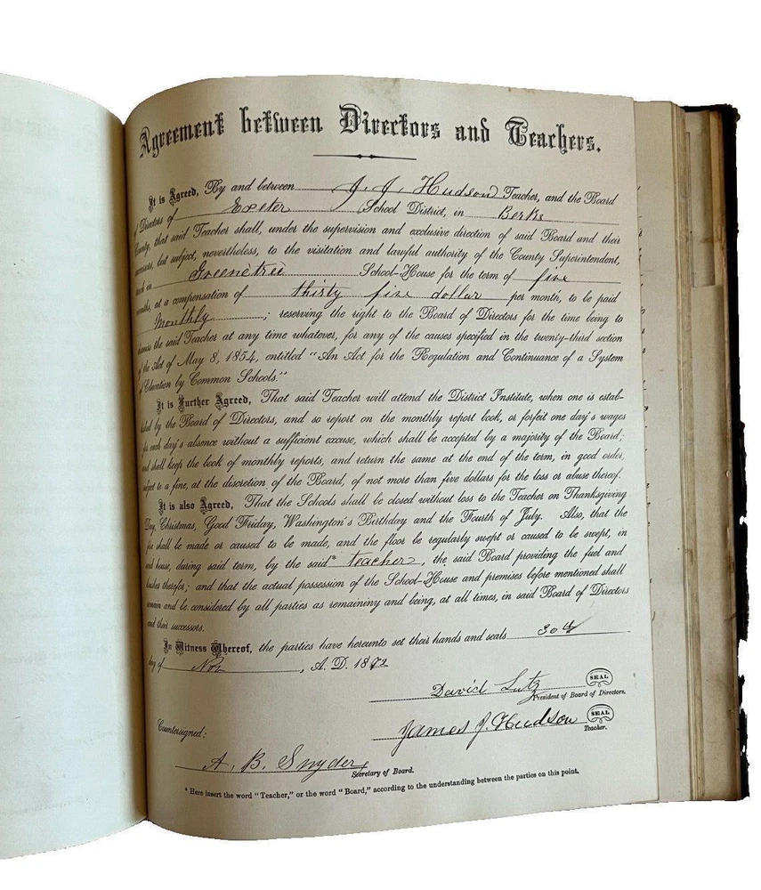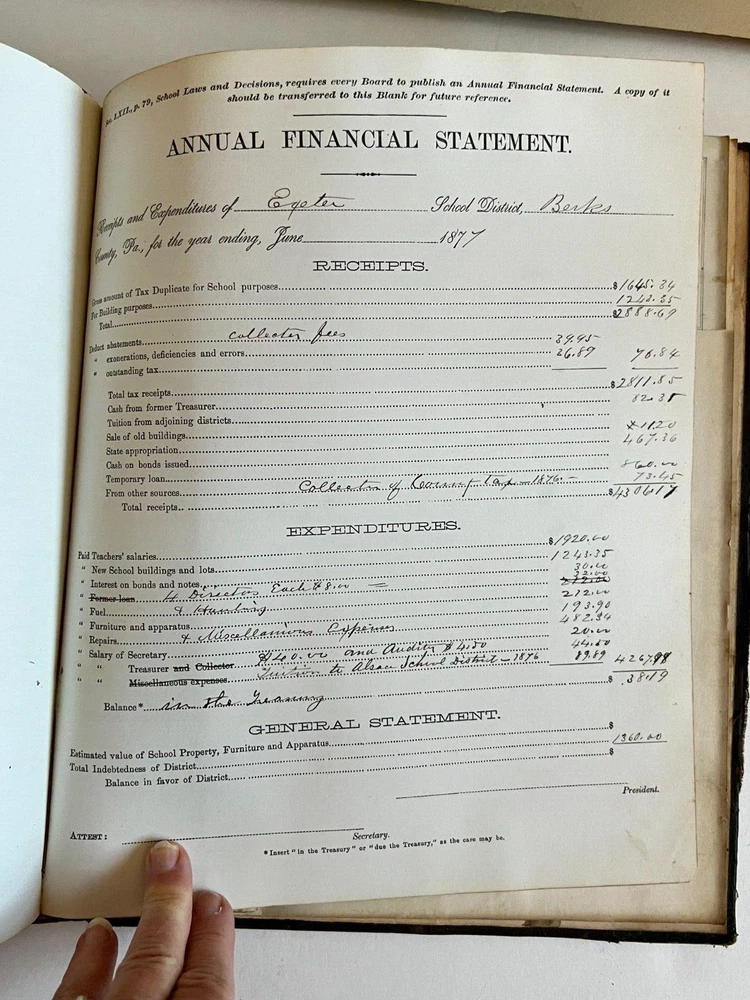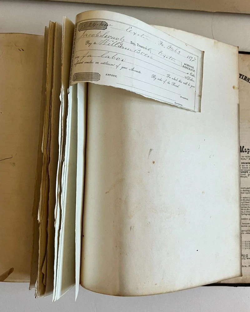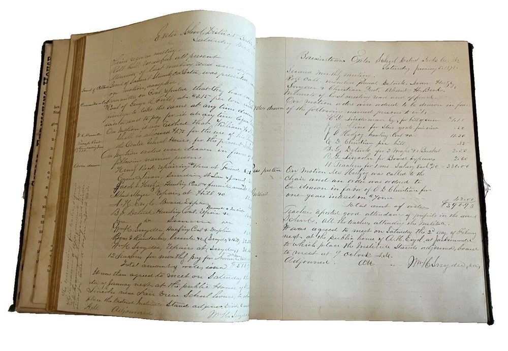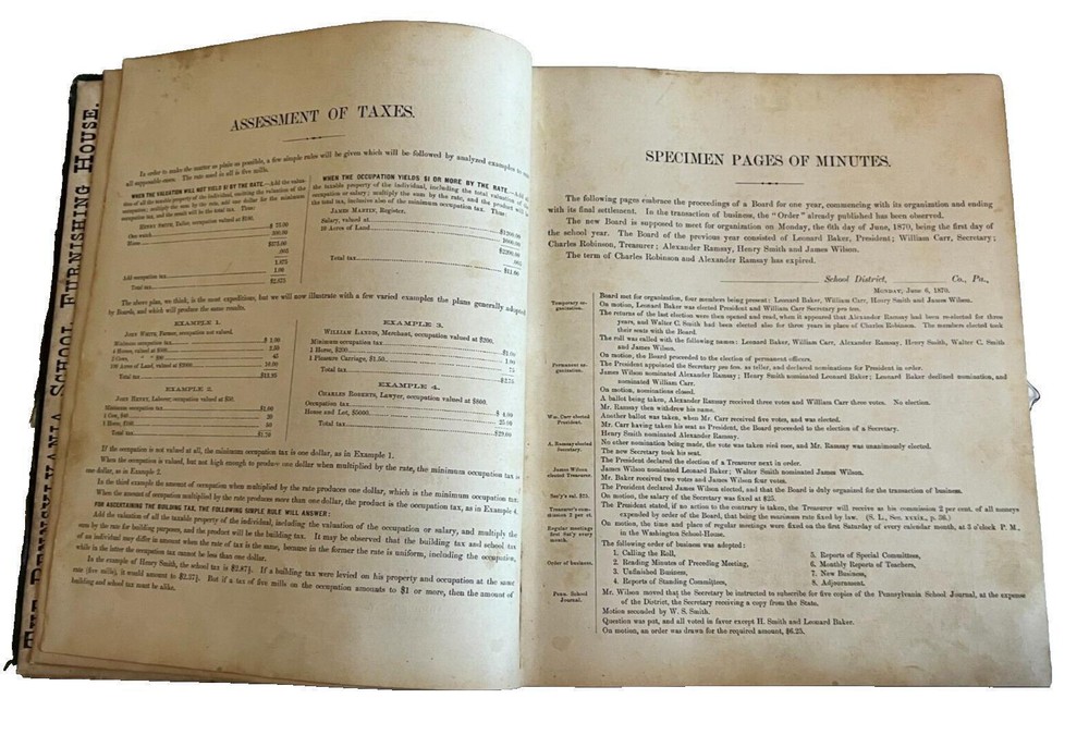 Antique 1870's Leather Bound Exeter PA School District Ledger Book Minutes Tax It is a ledger account book in handwritten script with minutes, assessment of taxes. agreements with teaches and annual district report and others. Many pages utilized by the districts. It consists of the years 1872 - 1877. Consists of approximately 200 pages. About 1/2 filled out, 1/4 empty and about 1/4 blank on one side. In primitive antique condition. It has wear, tear, loss to the leather binding and cardboard cover. The paper is yellowed, stained and has toning. The binding is broken with page separation. Several pages have been torn out. Please see photos. It measures approximately 9 3/4" x 11 3/4". FAQs All items are examined and every attempt is made to describe them completely and accurately. However, most items are antique/vintage, and by virtue of their age will not be perfect. They are previously owned and may show very fine handling marks and shelf wear and will not be perfect. Upon receipt if you have any concerns please contact me! If for any reason you are inclined to rate your experience less than five stars contact me first - lets discuss. Customer support is important to me as is your satisfaction! Combined Shipping? Yes, we do, and you will save $$ when you buy more that one item from us. Will my item be insured in transit? Yes, automatically by Ship Saver, the Post Office or Self Insurance. How will it be packed? Professionally! In bubble wrap with plenty of clean, recycled products and packaging tape for security. How can I pay? PayPal or other- Contact us if you need other payment method. Sorry, but after 7 days' of non-payment, eBay gets involved. Any issue, please talk to us! THANK YOU for shopping with P-B-Antiques inkfrog terapeak Listing and template services provided by inkFrog