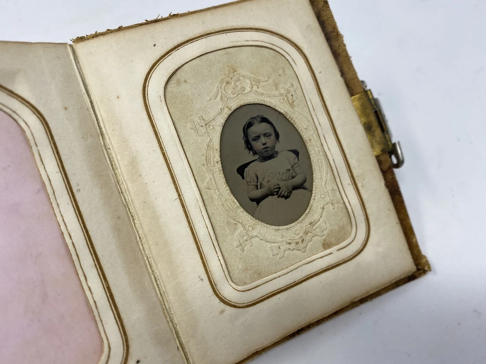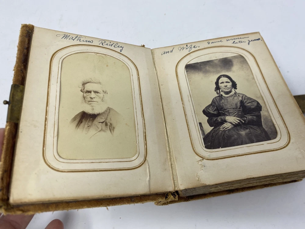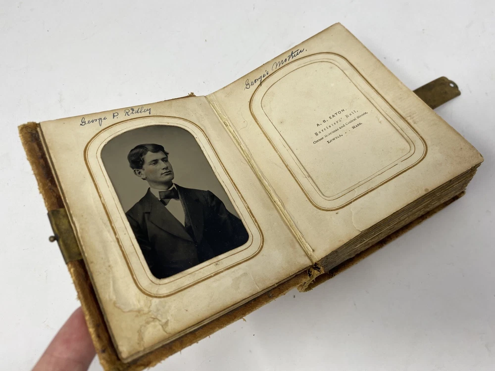 A unique piece of history! See photos for details. Book contains 41 portraits. Some labeled. Tintypes and paper photographs. Binding is intact but book has appropriate wear consistent with age...