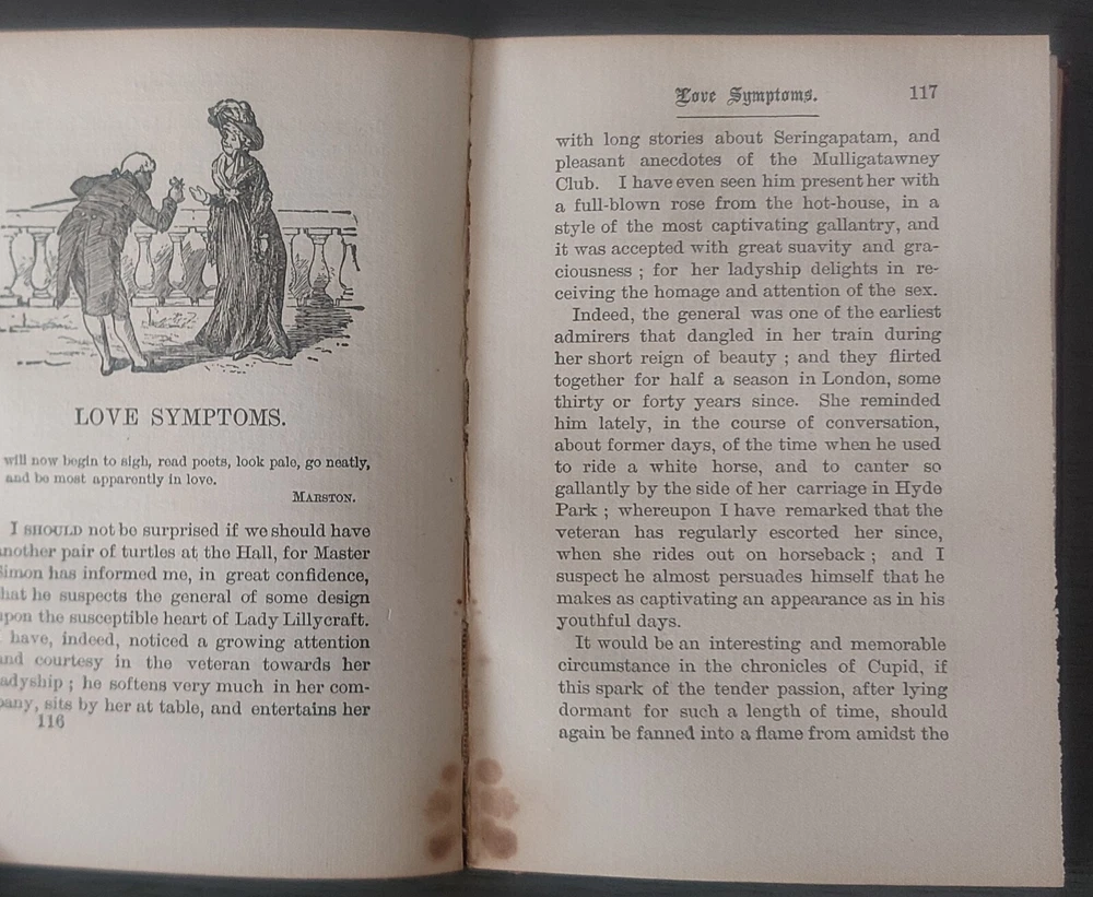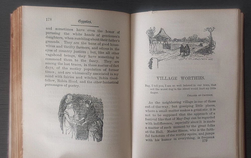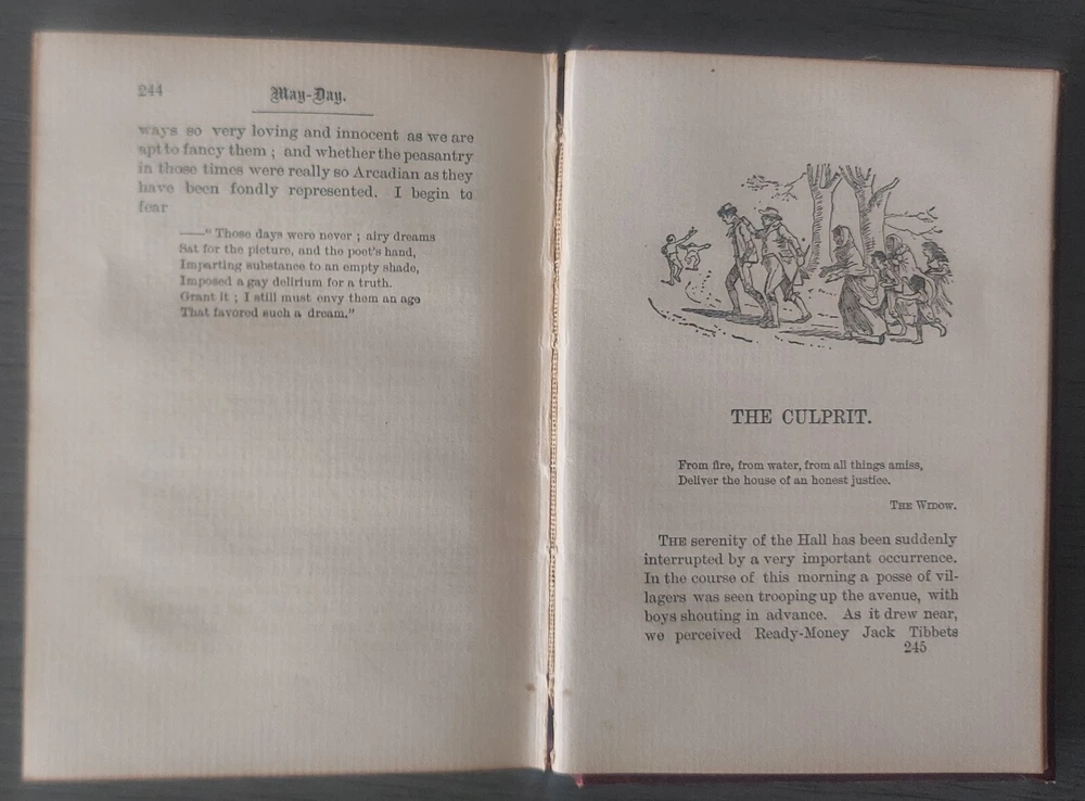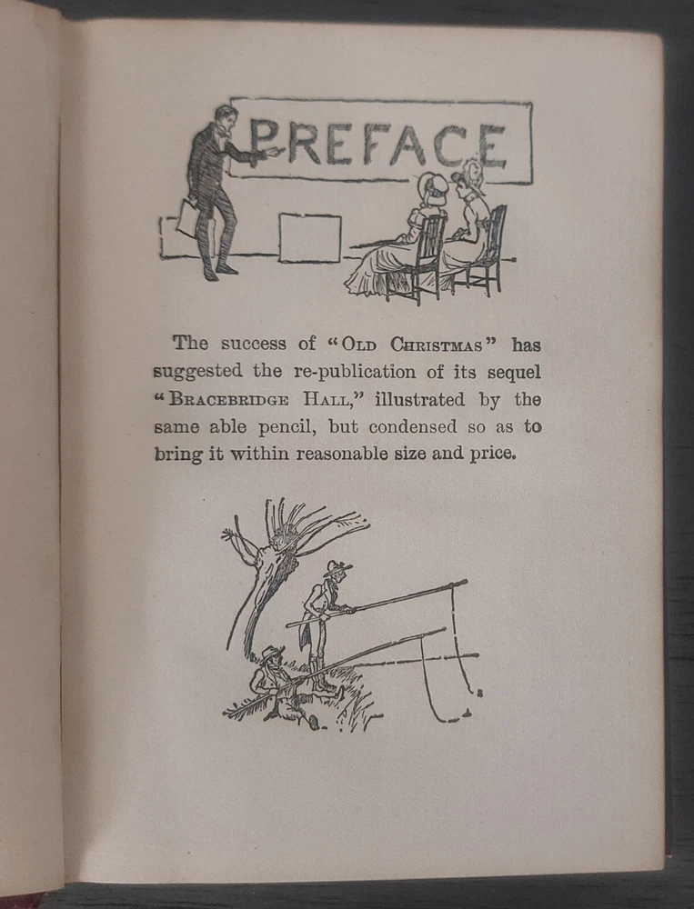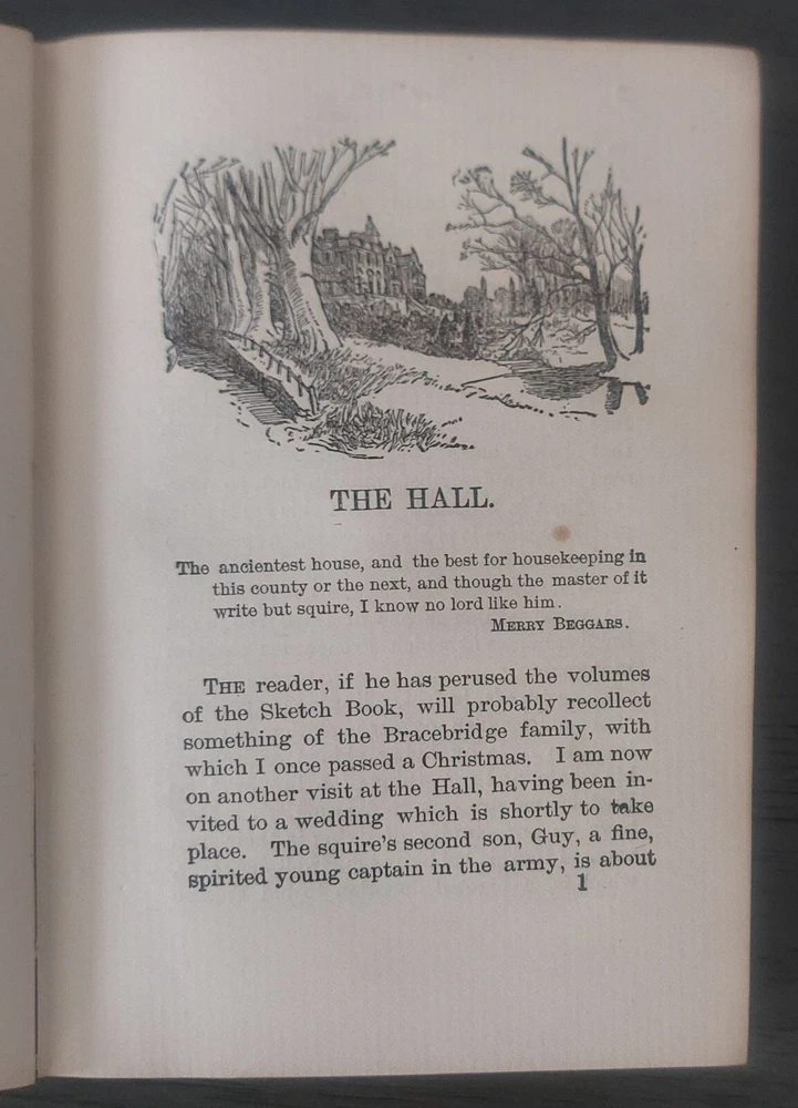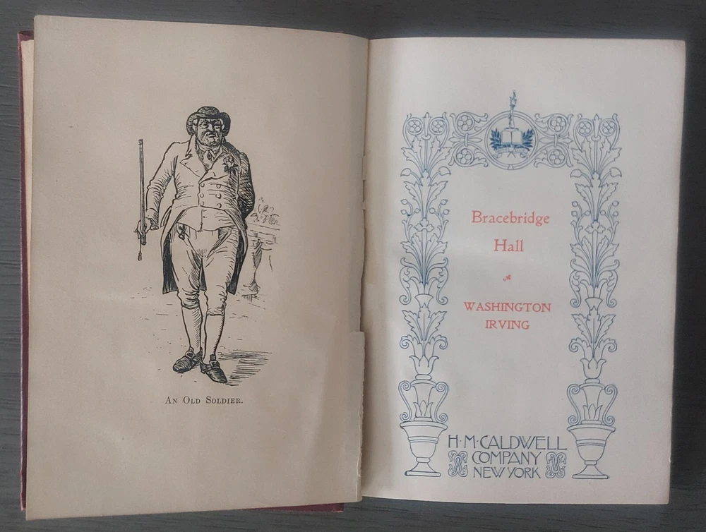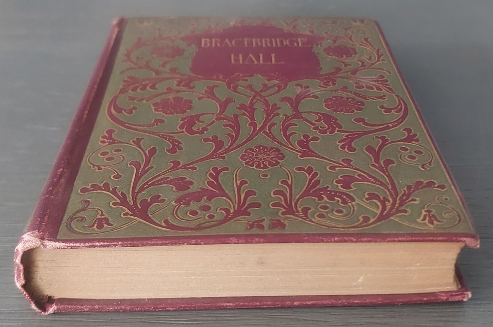 Antique 1898 "Bracebridge Hall" Washington Irving "Florentine Series" by H. M. Caldwell Publishers. This is a small format book, measuring 6 x 4 inches. Photos are of actual item for sale. Condition is "Good". Please see pics for more detail on condition and let me know if you have any questions or would like additional pics. Some rub wear on spine. Front endpaper shows a crease and some pencil notes. Next page in has some pencil notes, owners name and dated Sept 30, '98. Also this page has some separation at the hinge (see pic), but book's binding is tight. Separation also shows at the hinge at pgs 244-245, but again binding is tight. Reading pages are excellent, clean and unmarked with the exception of some spotting at bottom hinge pages 112-123, and a couple of partial page separations. Shipped with USPS Media Mail.
