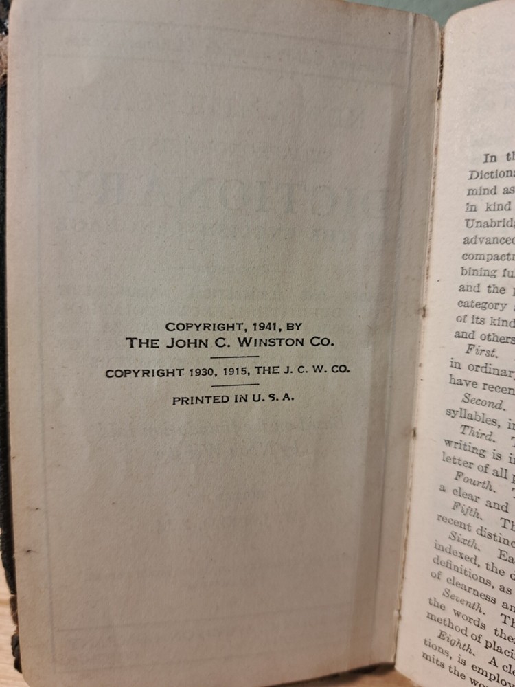 Antique 1941 leather-bound pocket dictionary by the John Winton company of Philadelphia Pennsylvania....