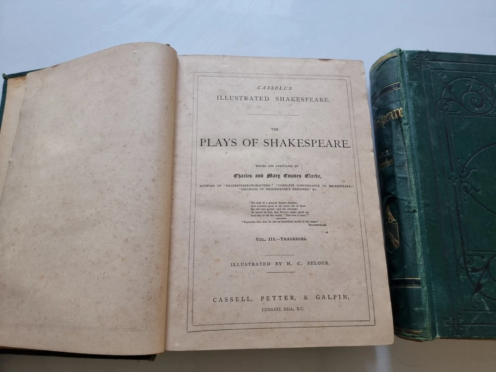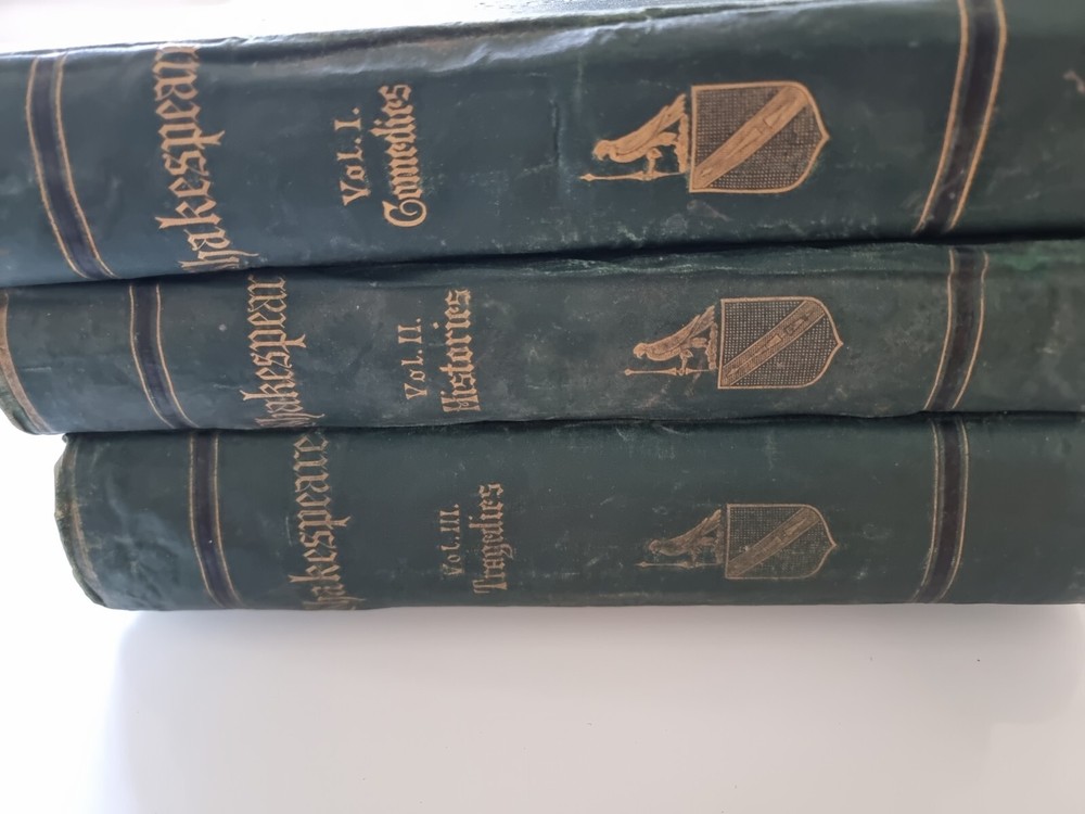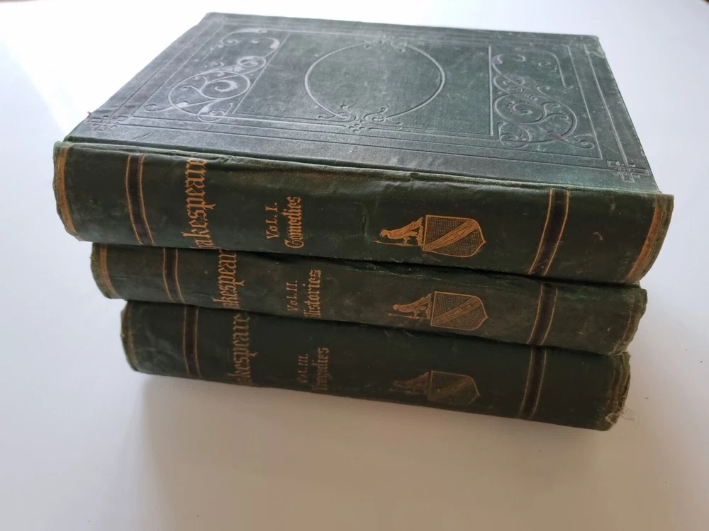 Antique Book Shakespeare.Vol 1 Vol 2 Vol 3 (the books are in their condition. vol 3 the cover is peeled off Old collectible books. (As is, volume 3 cover is removed) Antique Book Shakespeare.Vol 1 Vol 2 Vol 3 (the books are in their condition. vol 3 the cover is peeled off Old collectible books. (As is, volume 3 cover is removed)