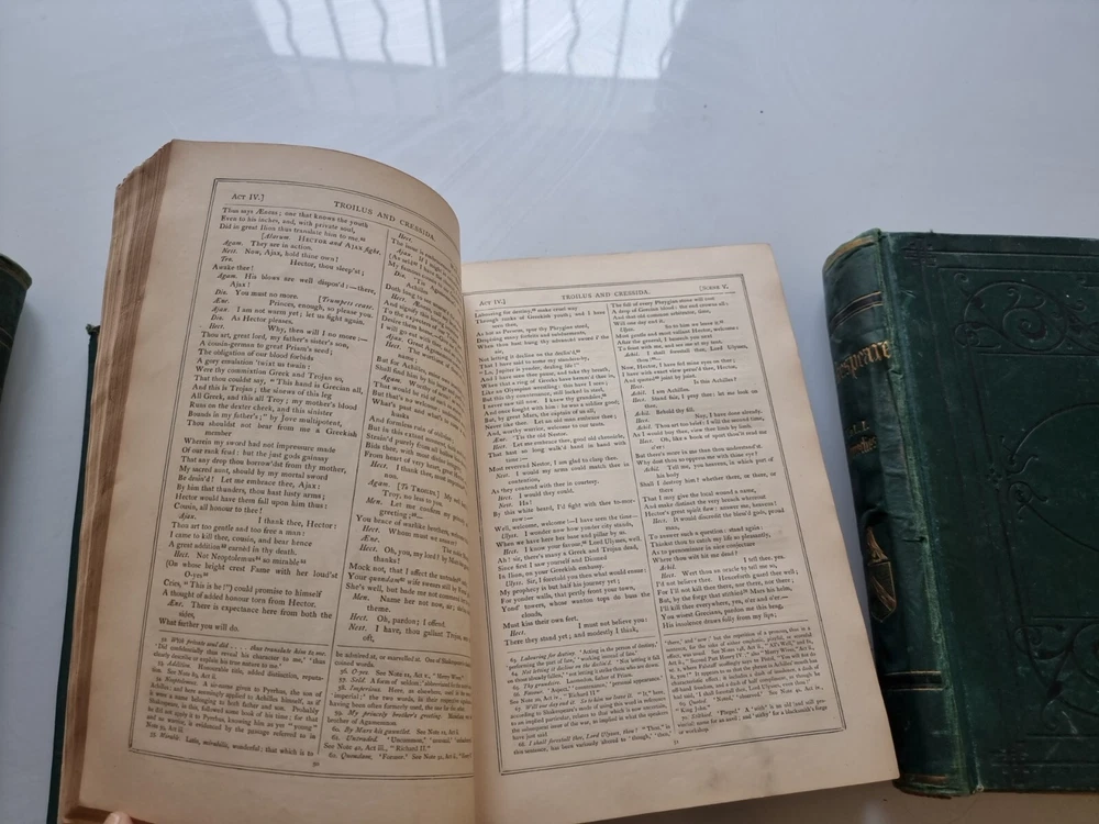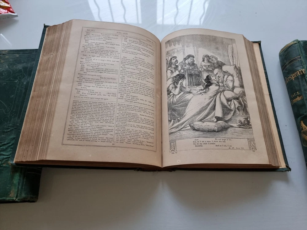 These antique Shakespeare volumes are a treasure for collectors! While Volume 3 shows wear with its missing cover, the set has wonderful character. The aged pages and classic look make them perfect for display or rare book lovers. A great find for anyone who appreciates vintage literary pieces as-is.