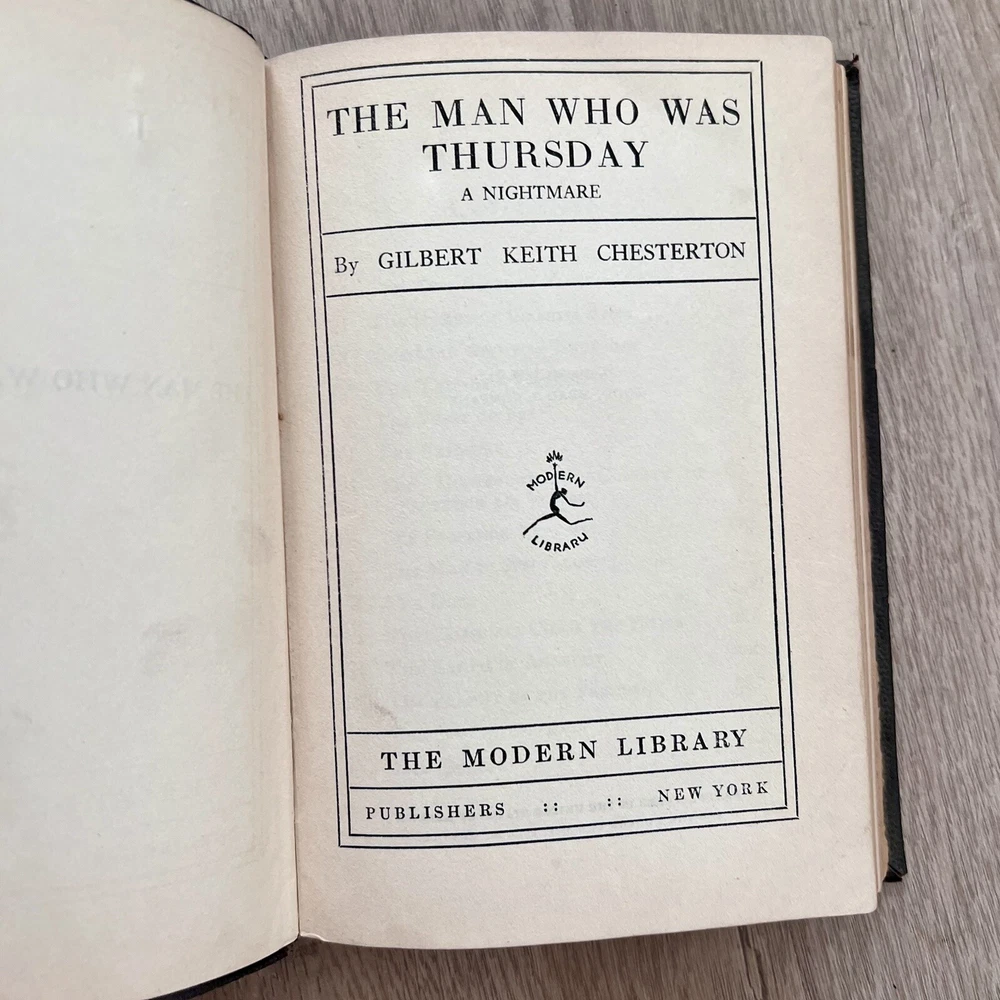 This antique edition of *The Man Who Was Thursday* is a treasure! The vintage charm and crisp pages make it feel like stepping back in time. G.K. Chesterton’s surreal mystery is as gripping today as it was in 1908—a must-have for collectors and book lovers alike. The Modern Library binding is sturdy, and the classic design adds so much character to my shelf. Absolutely thrilled with this find!