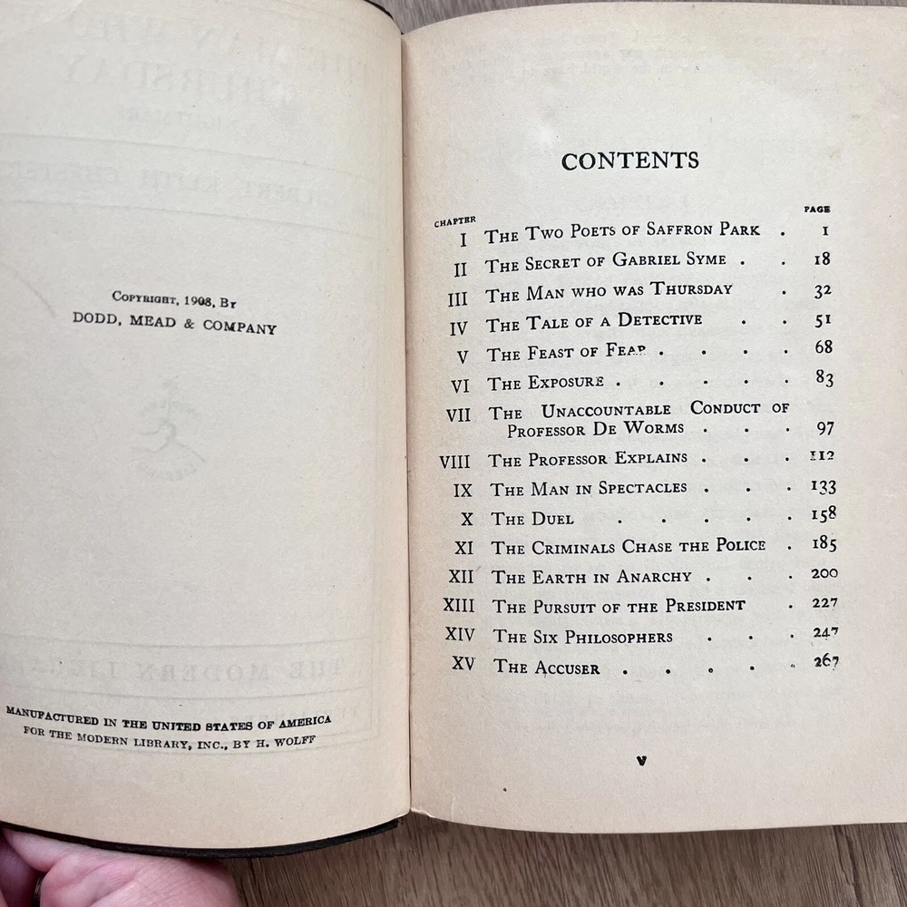 Antique Book, The Man Who Was Thursday, a Nightmare. (1908) The Modern Library