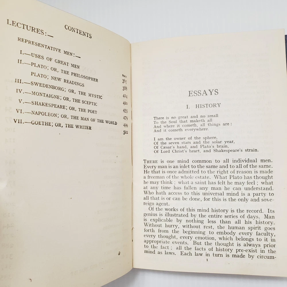 Antique Classic Essays of Ralph Waldo Emerson Vintage Book Leather Gold 1900s Philosophy Literature Stories Pocket Sized Welcome to the large selection of vintage & modern treasures in my bookshop. Each book photographed is the actual item you will receive. Great care is taken with each detail of every listing, and each order posted. If I have made a mistake or if anything is wrong, I will gladly make it right. All prices are negotiable. Visit Smith's Real Books for new listings daily. I'm so glad you stopped by. Thanks so much for your support!