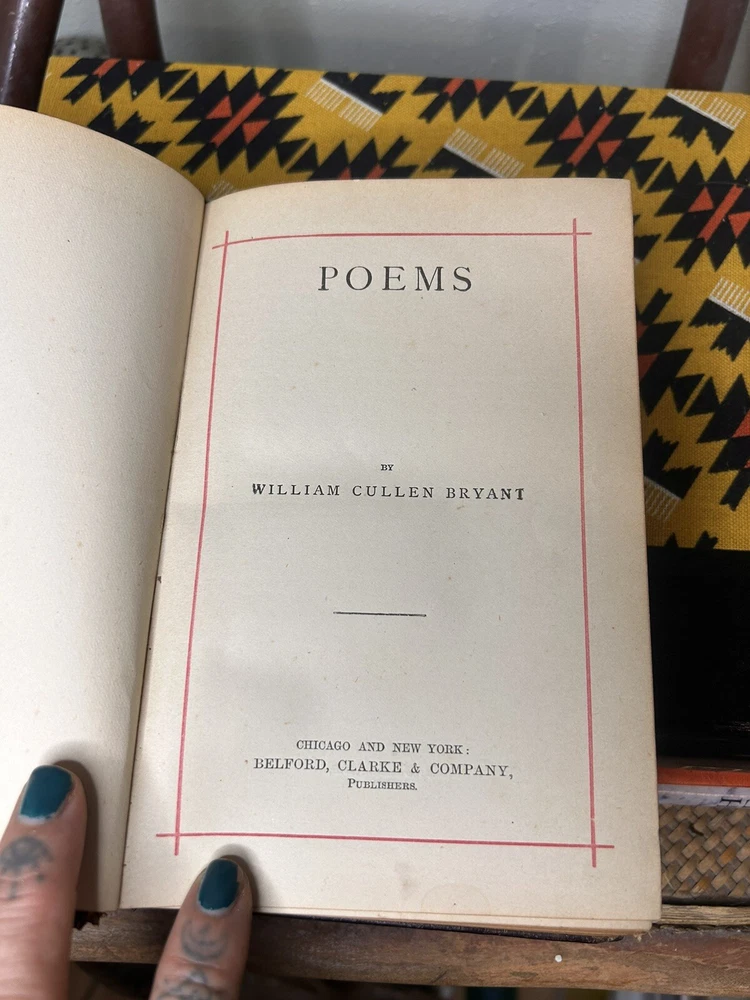 This antique book is a luxury edition of William Cullen Bryant's Poems, published by Belford, Clark & Company in the 1880s. The hardcover format had gold gilt detailing on the page edges and features a leather embossed bound cover. The book is written in English and contains expressionist poems from the 1800s. The vintage book is perfect for collectors of antiques and rare editions. It was published in the United States and is an excellent addition to any book collection. The book is categorized under Books & Magazines and Books, and it is sure to be a valuable addition to your library.