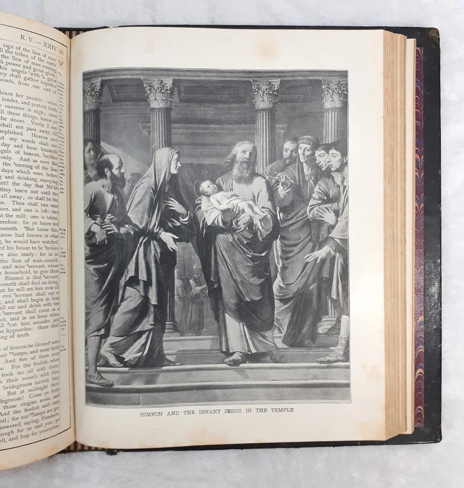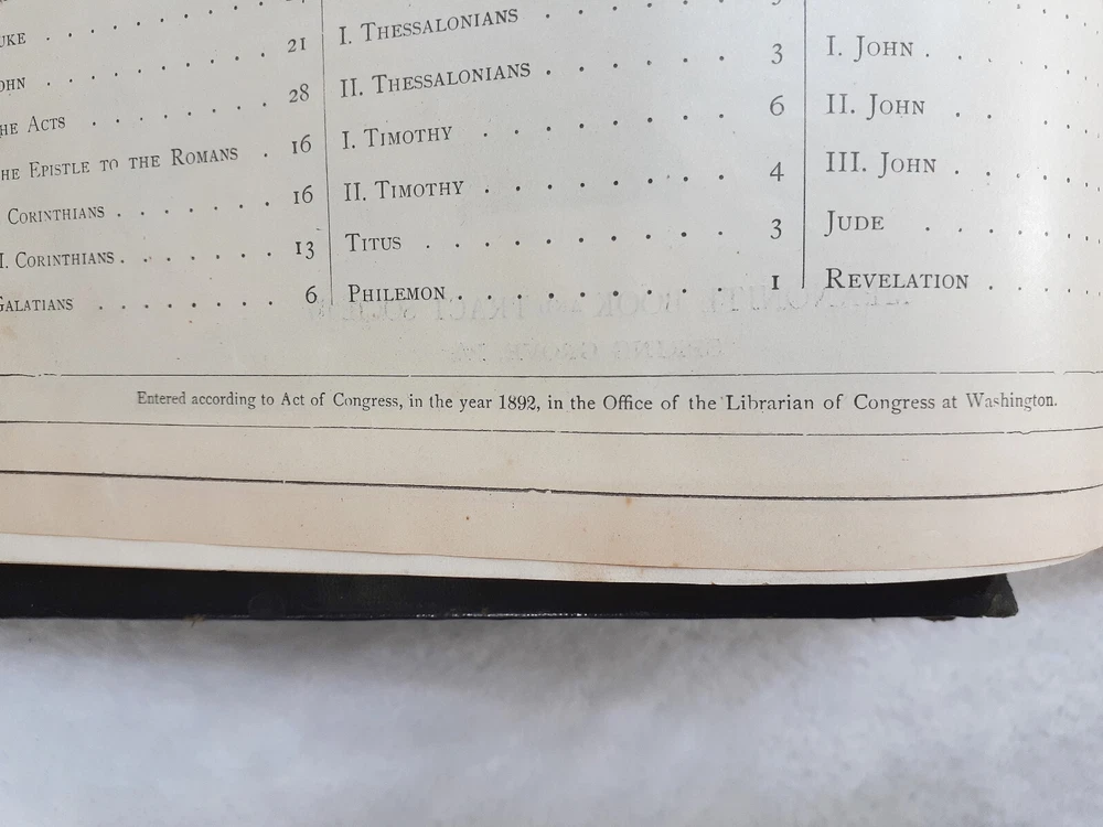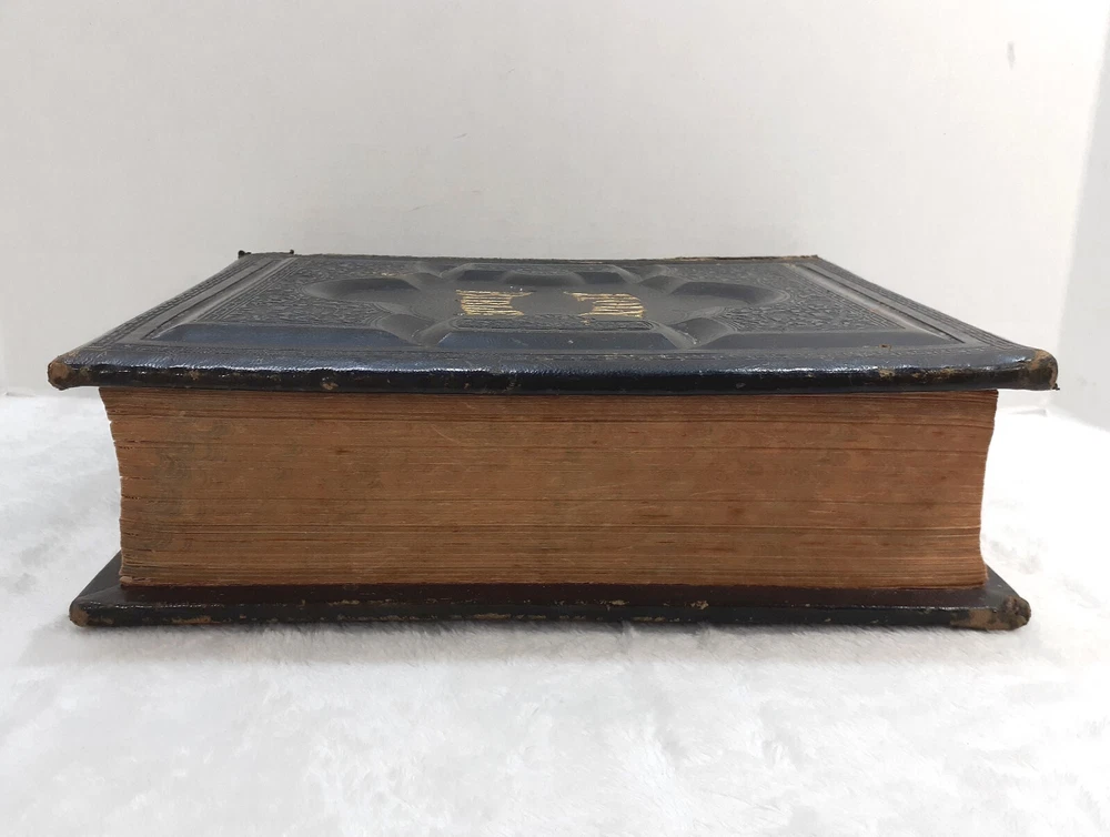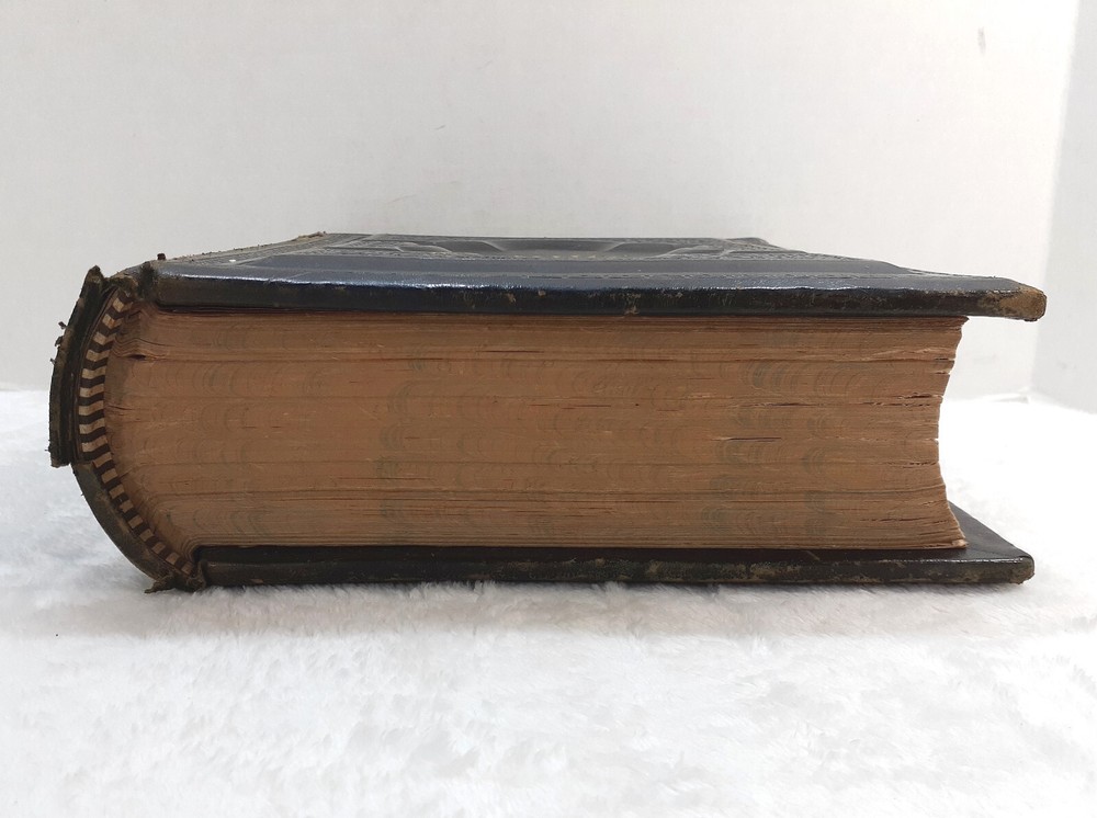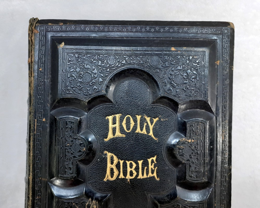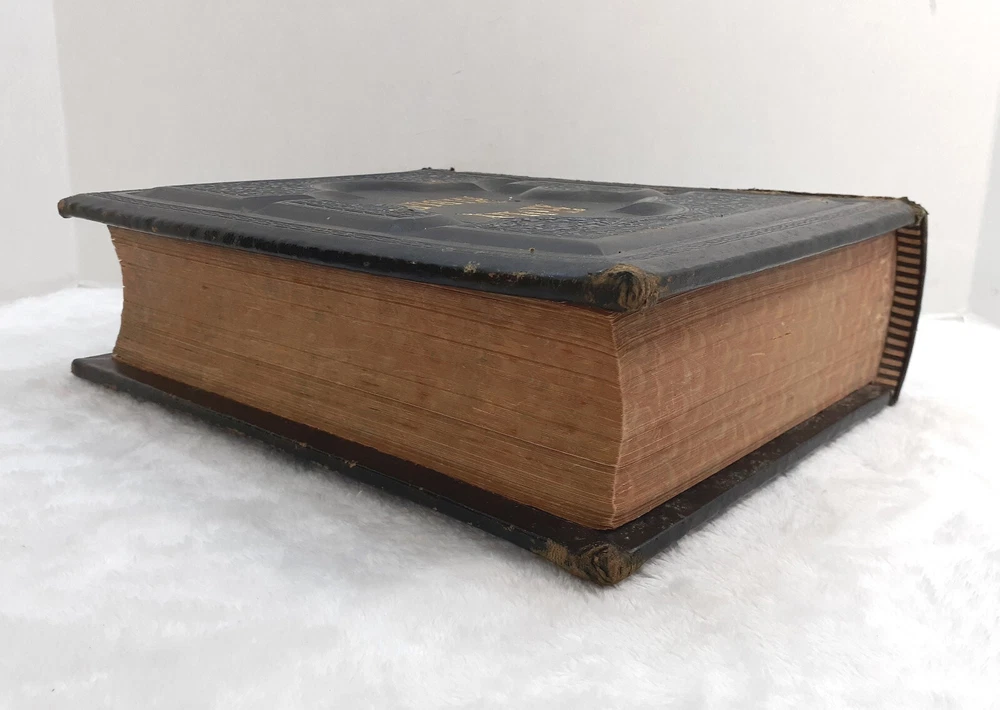 Antique 1892 Family Self-Pronouncing Parallel Bible, Leather Bound, by Mennonite Book & Tract Society. Bible is in great condition for its age! Only a few folds and tears. Binding is pretty darn good for its age! Feature: - Illustrations - King James and Revised Versions - Concordance - Psalms of David in Metre - Old and New Testaments - Parables of Jesus - Family History Pages (marriages, births, deaths, temperance pledge) See more great antique, vintage and modern books in my store! Visit my store!