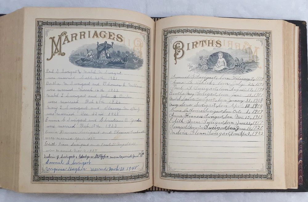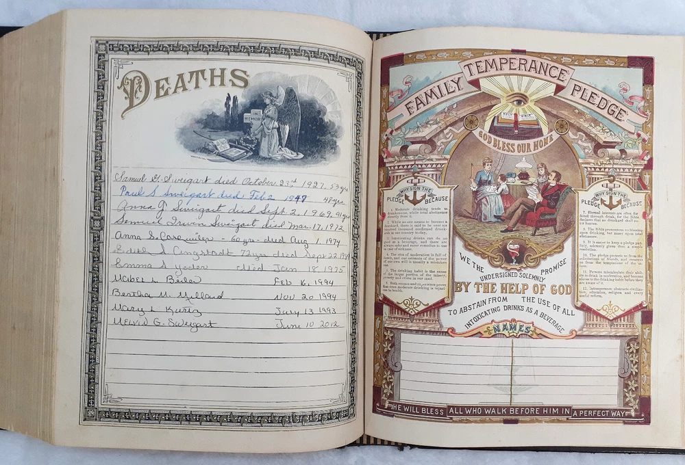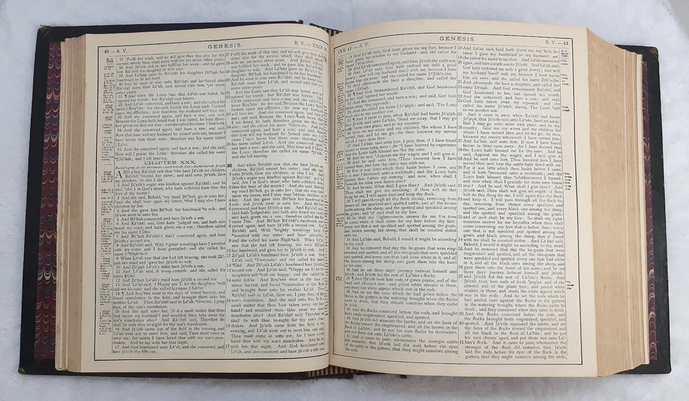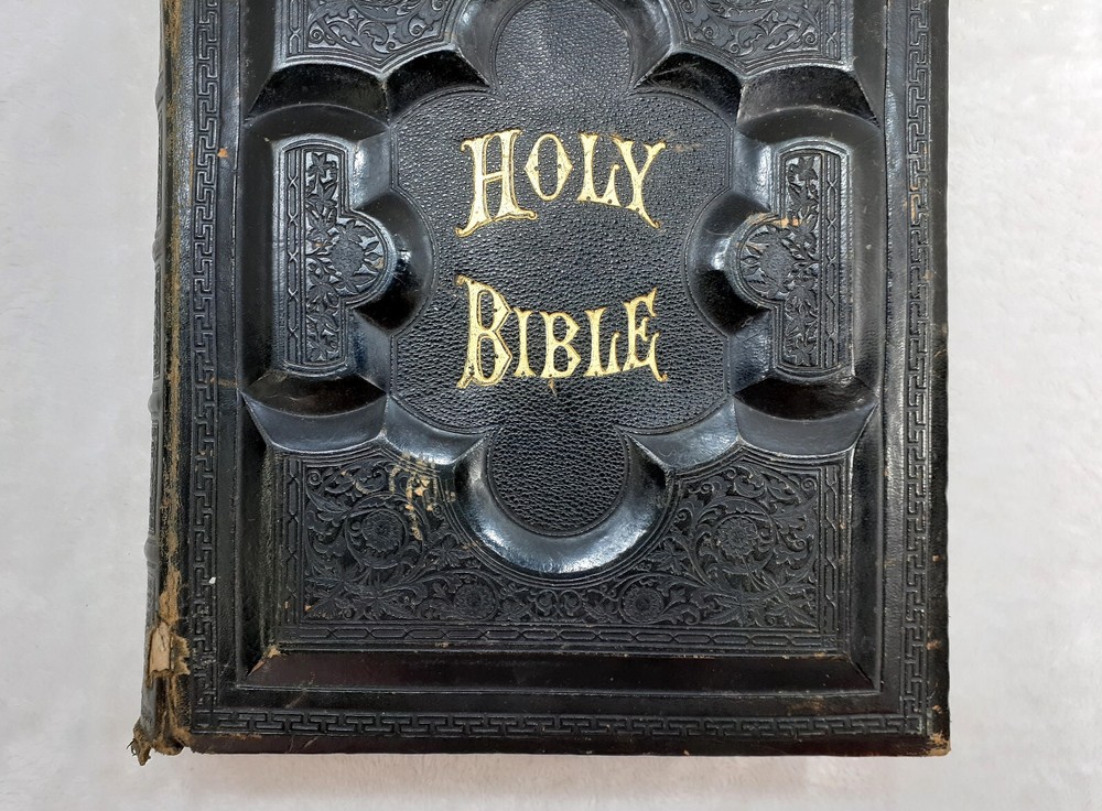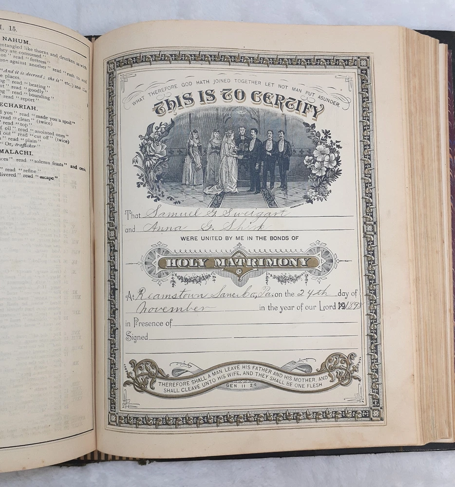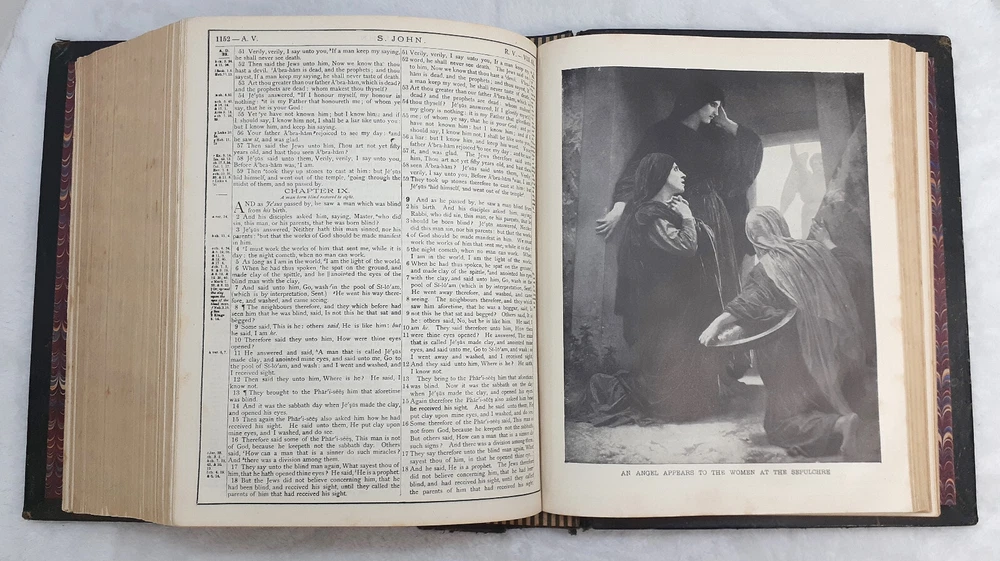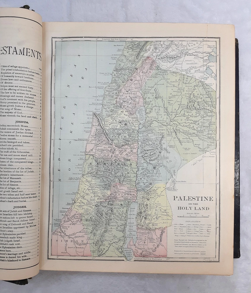 Antique 1892 Family Self-Pronouncing Parallel Bible, Leather Bound, by Mennonite Book & Tract Society. Bible is in great condition for its age! Only a few folds and tears. Binding is pretty darn good for its age! Feature: - Illustrations - King James and Revised Versions - Concordance - Psalms of David in Metre - Old and New Testaments - Parables of Jesus - Family History Pages (marriages, births, deaths, temperance pledge) See more great antique, vintage and modern books in my store! Visit my store!