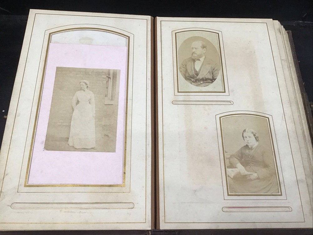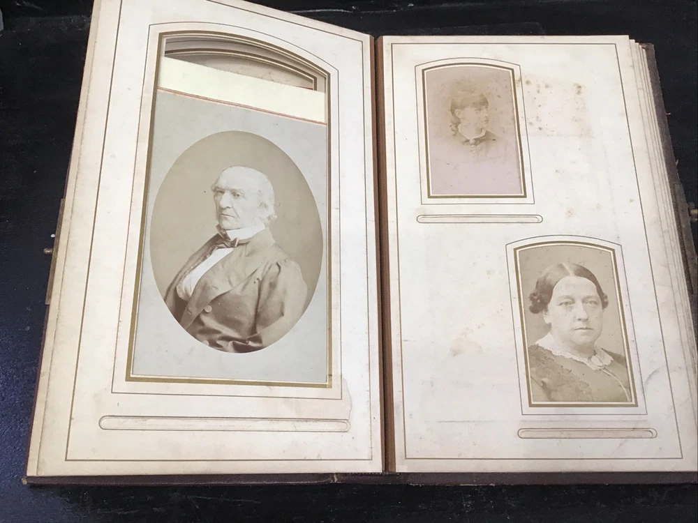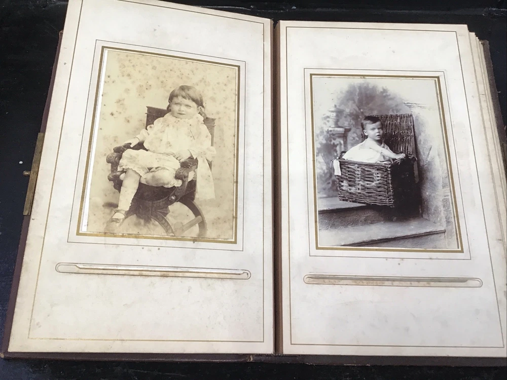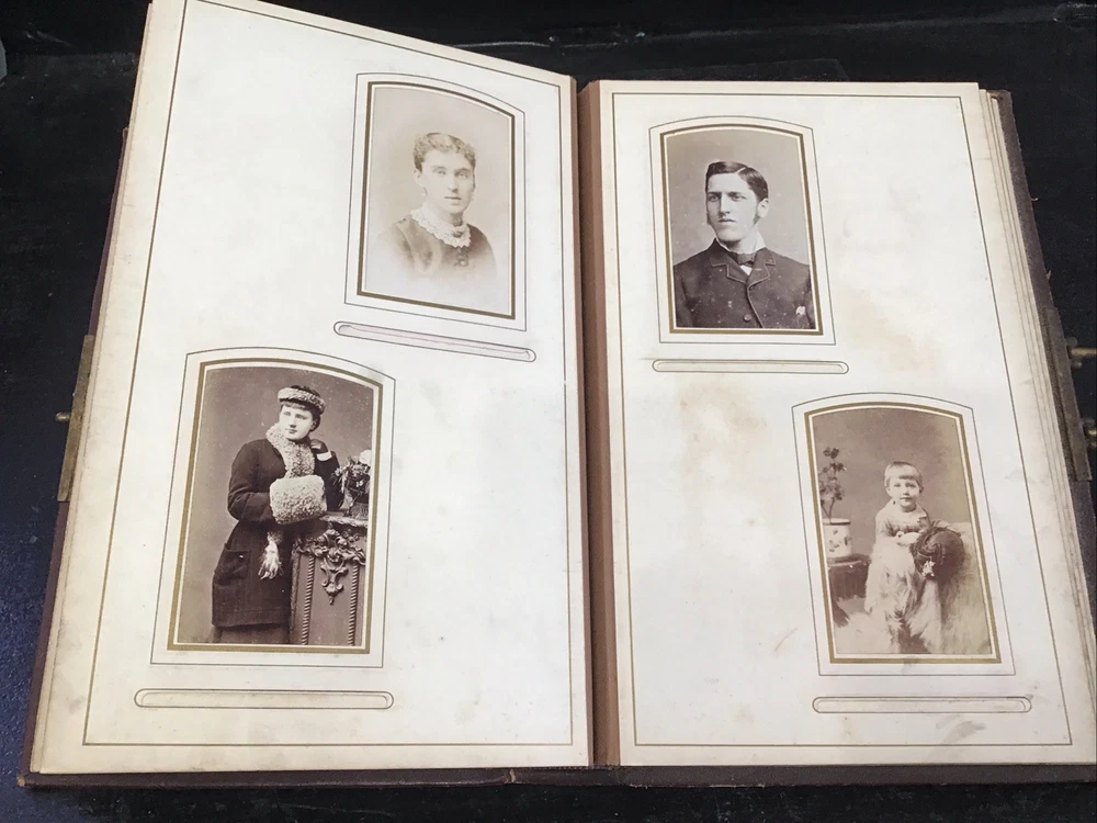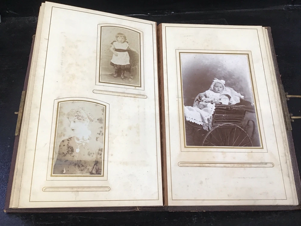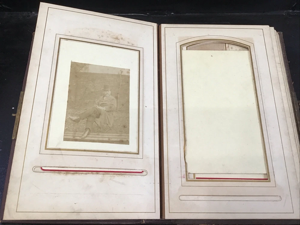 Delve into the past with this Antique Leather Bound & Brass Photo Album, a treasure trove of history filled with 26 CDV’s (Carte de Visite) and photos. Each image captured in this collection portrays a glimpse of life from a bygone era, offering a unique window into the world of yesteryears. Crafted with the elegance of yesteryear's craftsmanship, the album's leather exterior exudes a classic charm, while the brass accents add a touch of timeless sophistication. Ideal for collectors and history enthusiasts alike, this photo album is a testament to the artistry and storytelling of vintage photographs.
