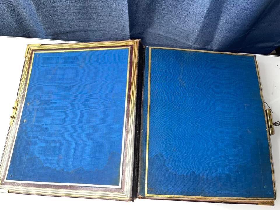 This antique leather bound portfolio is a must-have for any collector of scrapbooks and paper items. The portfolio is made of high-quality leather and has a beautiful design that will make it stand out in any collection. Comes with complete appraisal. The portfolio is perfect for storing and organizing your scrapbooks, photos, and other memorabilia. It is an ideal addition to any home library or office. The portfolio is suitable for a variety of uses, including scrapbooking, photography, and graphic design. It is perfect for anyone who wants to store their memories in a stylish and organized way. With its classic design and high-quality construction, this antique leather bound portfolio is sure to become a cherished item in any collection.