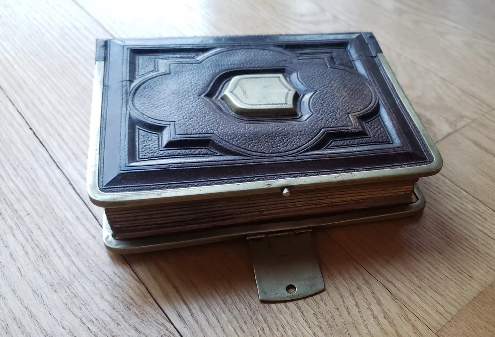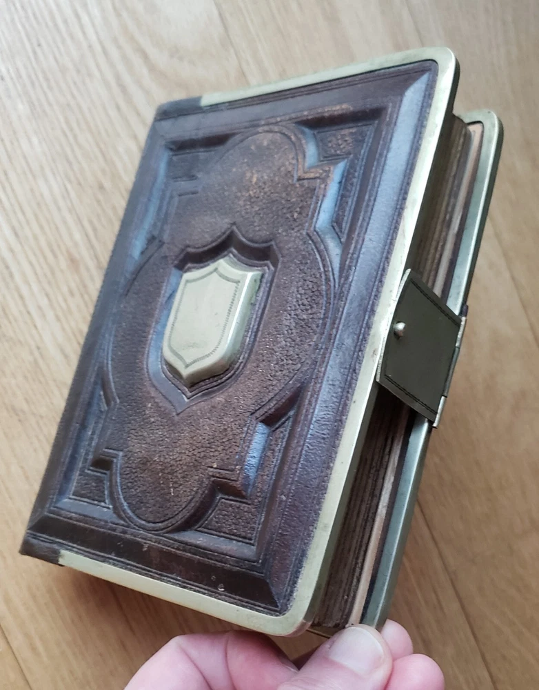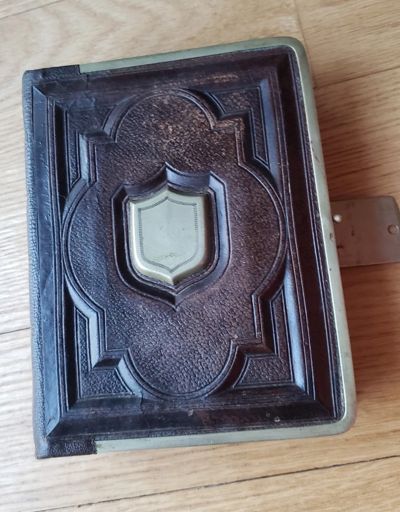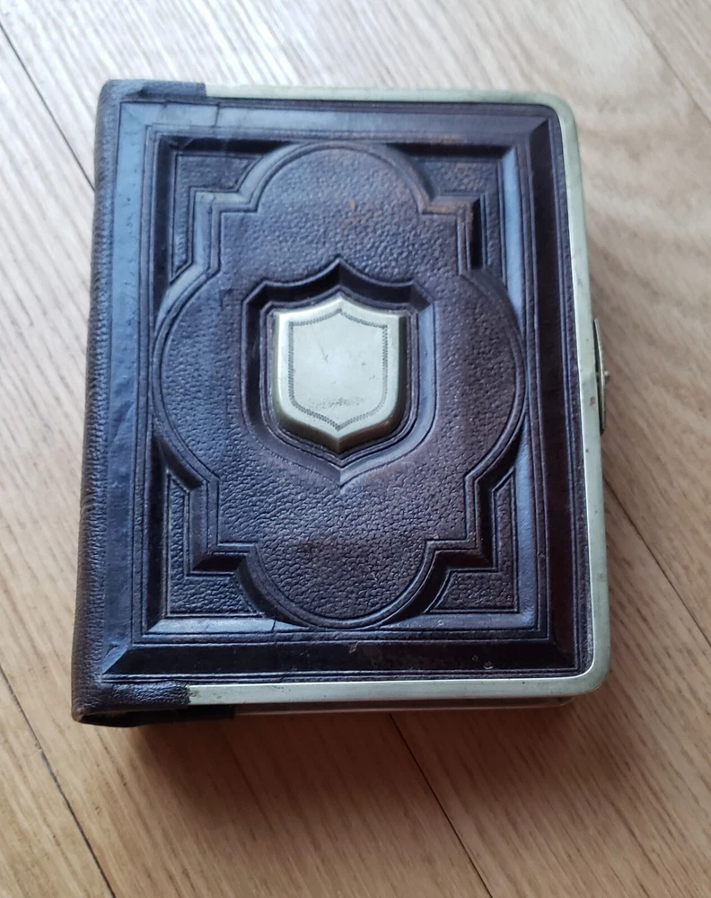 Up for sale Antique Leather Bound Victorian Metal Clasp Photo Album The album measures approx. 4.75" W x 6.25" H x 1.5" Deep. There is just one photo. Has 16 pages for photos. The album is in good condition for its age. Please see all photos. __________ I try my best to accurately describe all items but please email me with questions. Please make payment within 3 days. The packages are insured. I combine shipping. Happy e-baying. 6