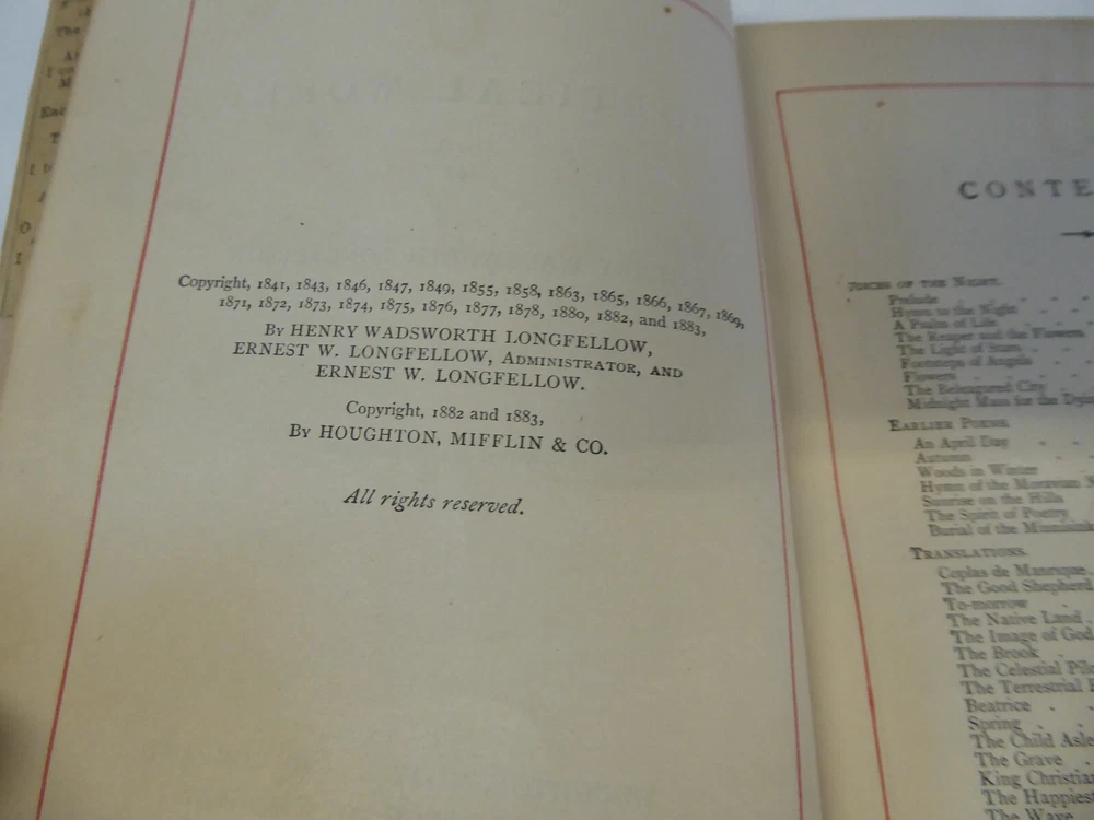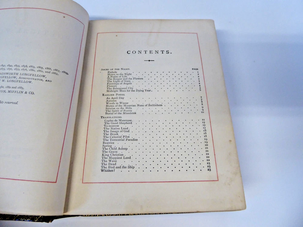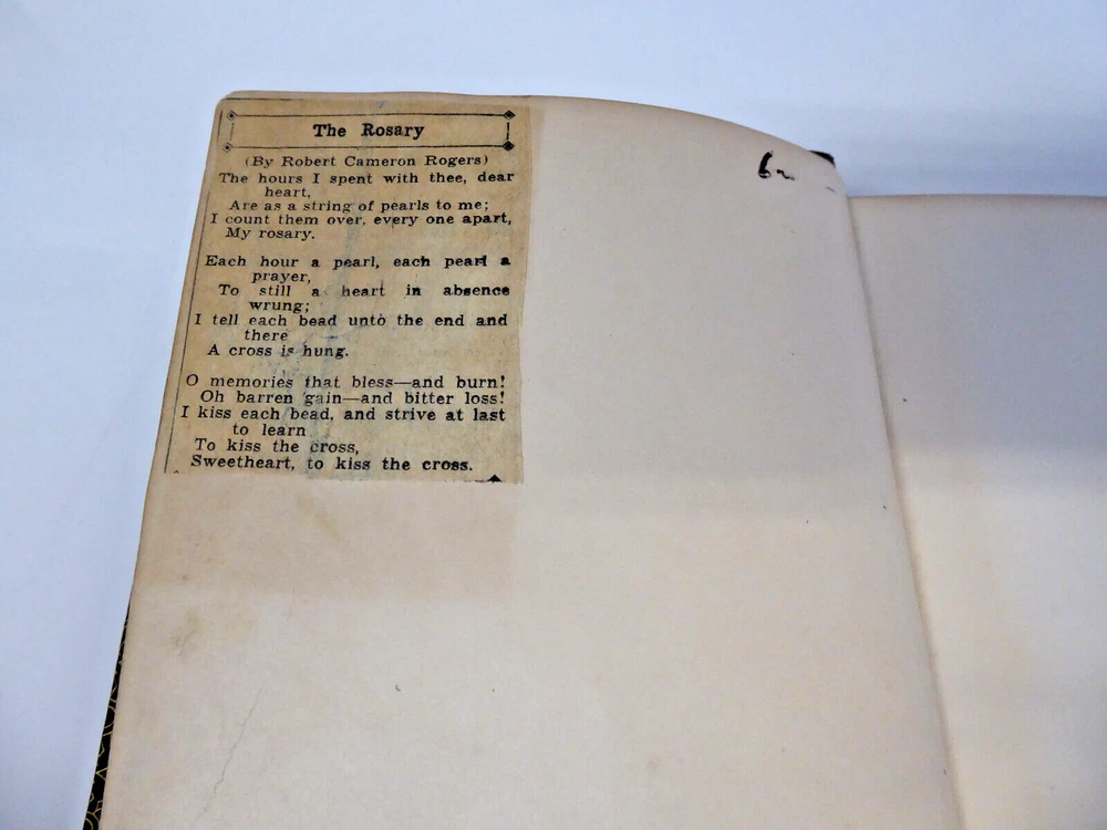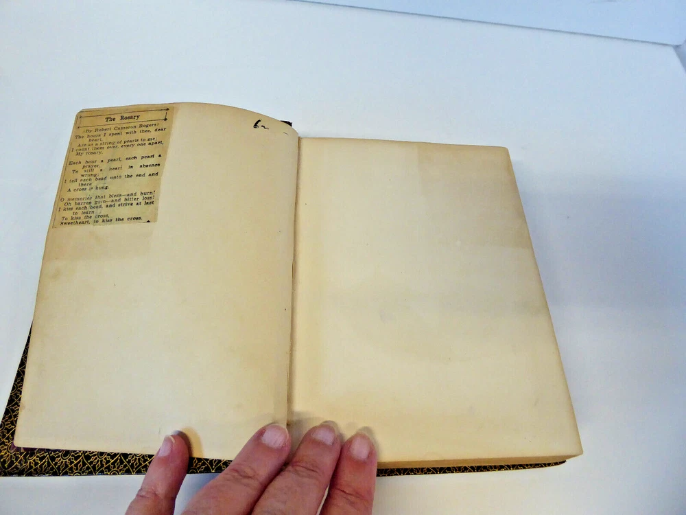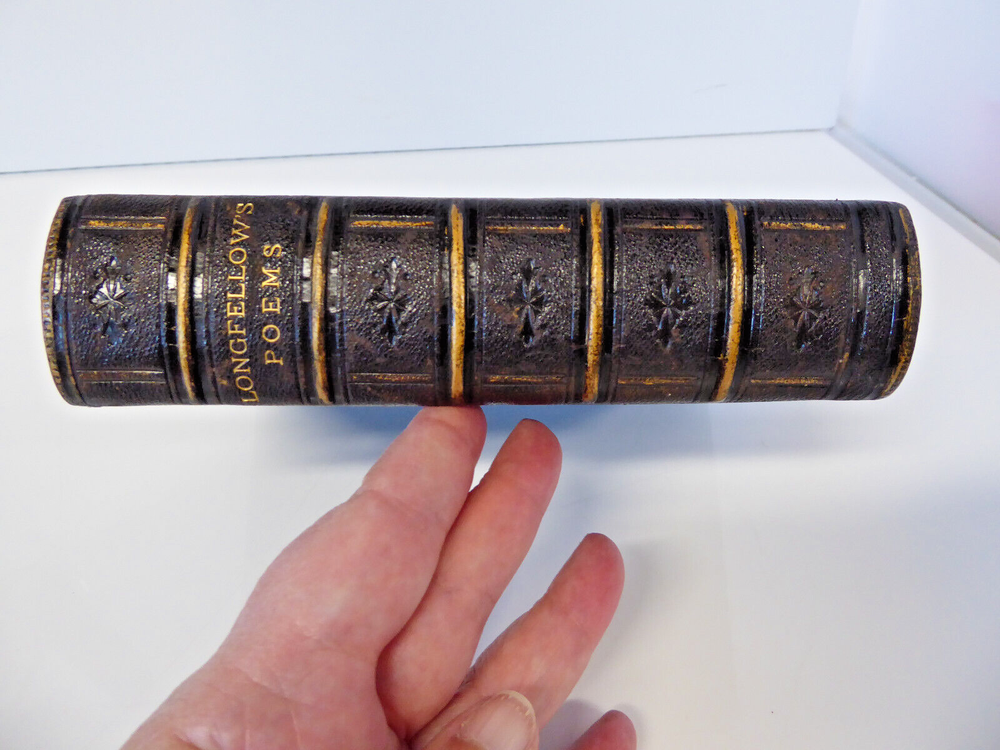 Antique Longfellows Poems Book 1883. In good condition with a glued in Rosary clipping? Please ask all questions before auction ends and I will do my best to answer. Most all of our items are vintage or antique, used or pre-owned. If they are new, I will let you know. I try my best to describe what the present condition of the item is. However, please note you are not buying a new piece and most all pieces will have some type of use wear. Please look at photos carefully as they give the best description. If purchasing a large or heavy item, please keep in mind the shipping will be higher. Thanks for looking.
