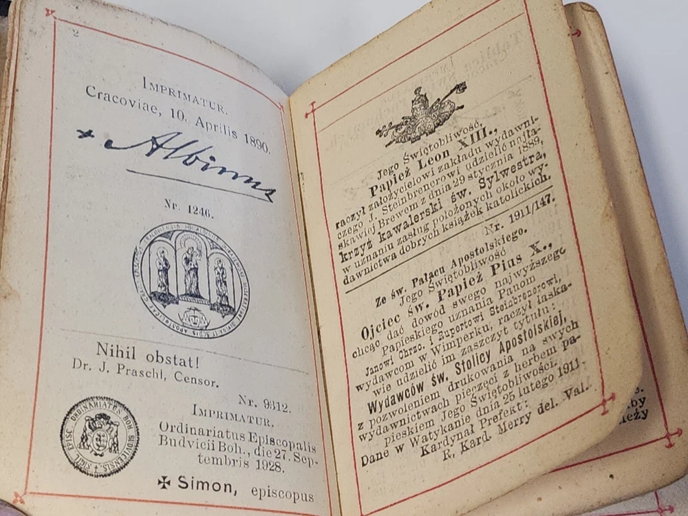Antique Polish Prayer Book 1928 ANIOL STROZ Ecclesiastica - Leather Bound Small Acceptable preowned condition with moderate signs of age and use. Wear and tear to cover and spine. No loose pages. No writing or markings except inscription on fly page. No odors present. Please see photos for more details Any questions are welcomed and answered promptly Fast careful shipping