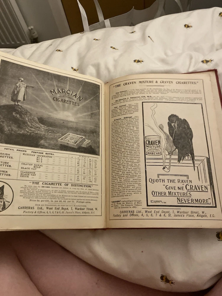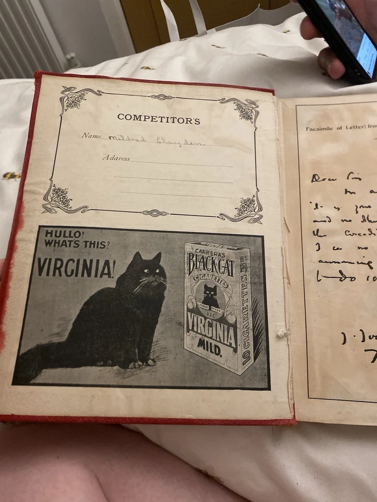 Picked this up in England. Absolutely amazing. Stamps from all over the world dating to the 1800’s. Edge does show wear. Advertisements are amazing...