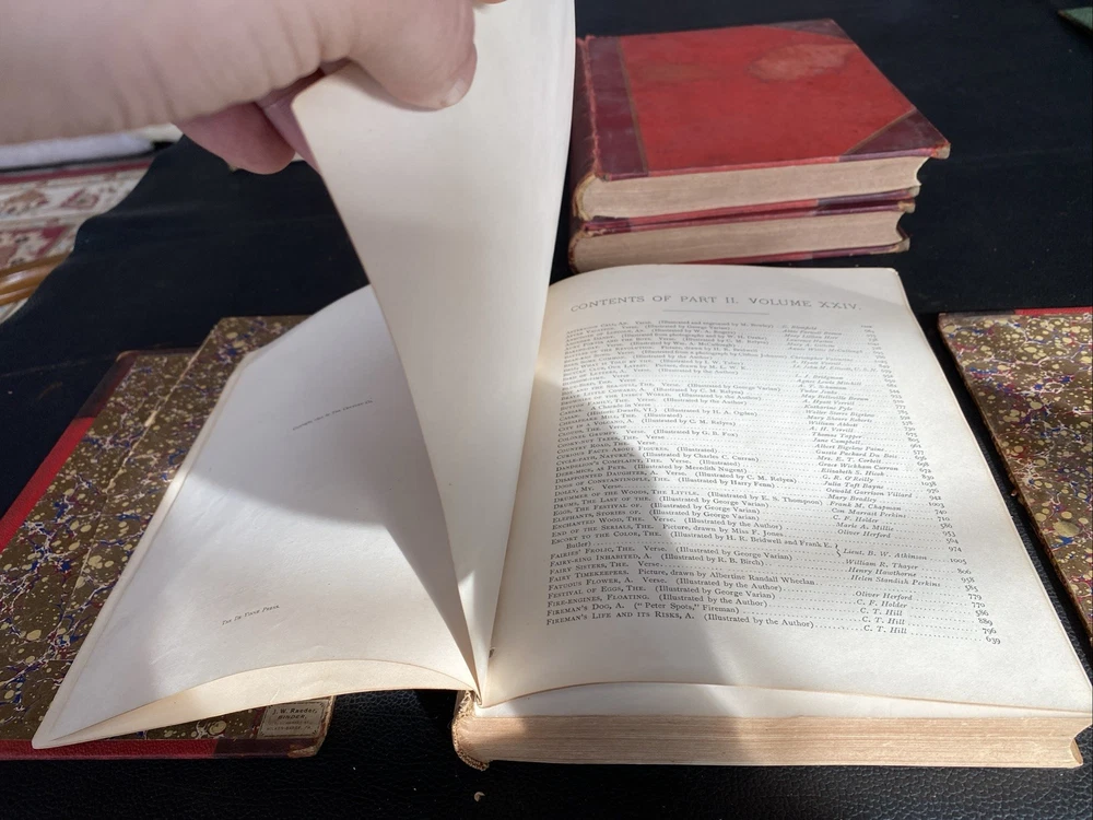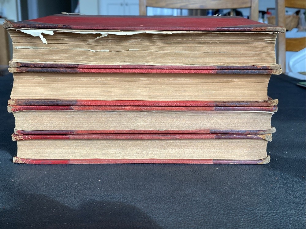 Lot of 4 most of the covers detached as shown one has rnt and back attached and one has 1 cover attached rest detached, some pages loose and detached but i think mostly all there see all photos Interior of books is pretty good with minimal issues. Some pen marks pencils writings etc may exist throughout as shown see examples very minimal Includes part II VOL VII & VIII. VOL XXI PART I VOL XXIV PART I