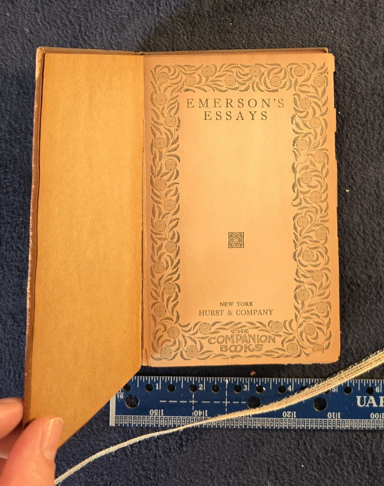 The product is a vintage hardcover book titled "Emerson's Essays" published by Hurst & Co in the 1910s. It is a nonfiction world literature and classics genre book written by Emerson in English language. The book is not signed, inscribed, or personalized and does not have an ex libris label, making it a valuable addition to any classic literature collection.