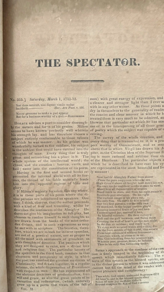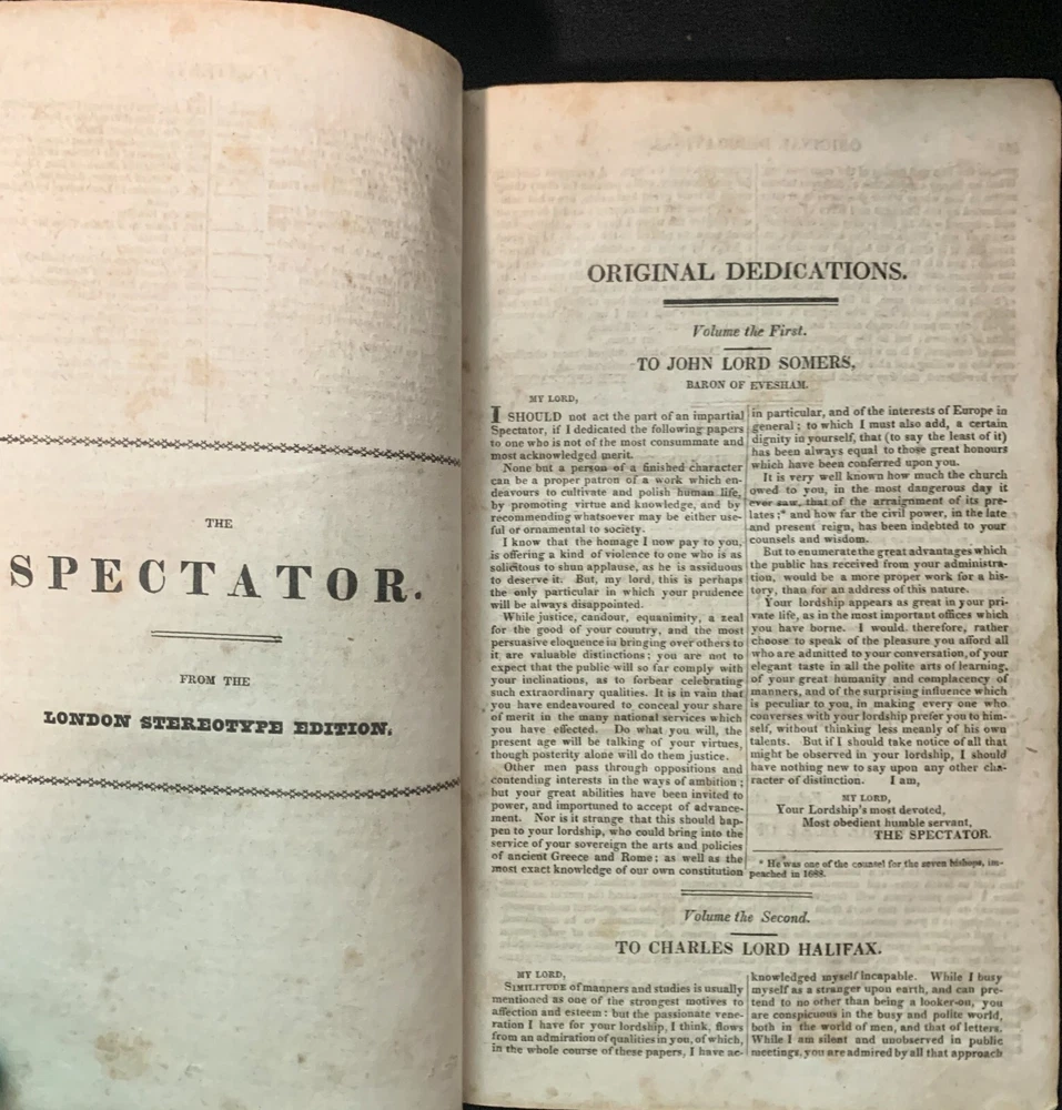 Absolutely love this antique two-volume set! The 1826 reprint of *The Spectator* is a treasure, filled with timeless essays by Addison and Steele. The handwritten inscriptions from 1834 add such a personal, historical charm—it feels like holding a piece of literary history. The binding is sturdy, and the pages have aged beautifully. A must-have for collectors and literature enthusiasts who appreciate rare, meaningful editions. So glad to add this to my library!