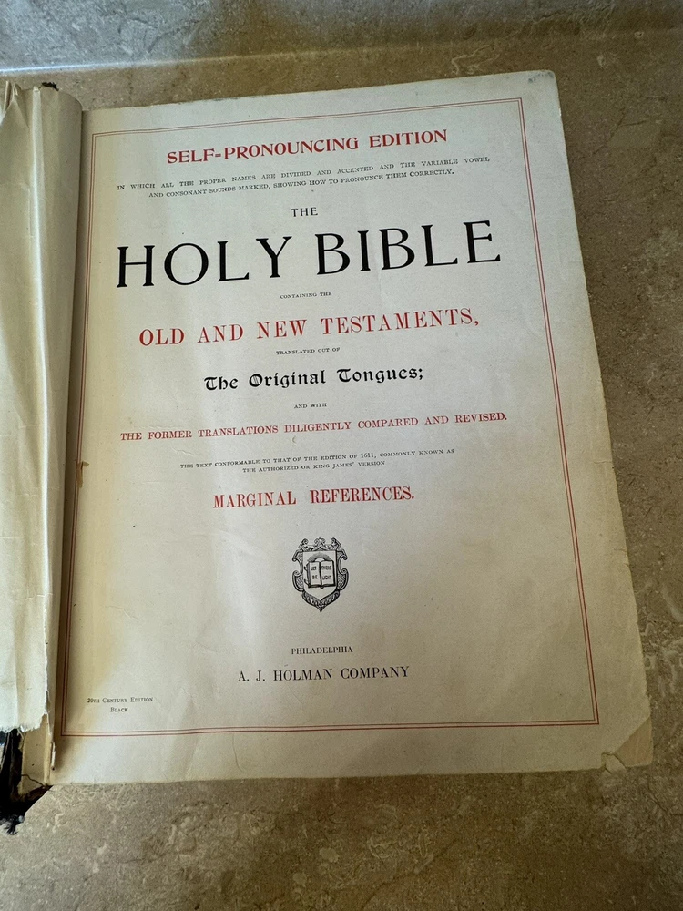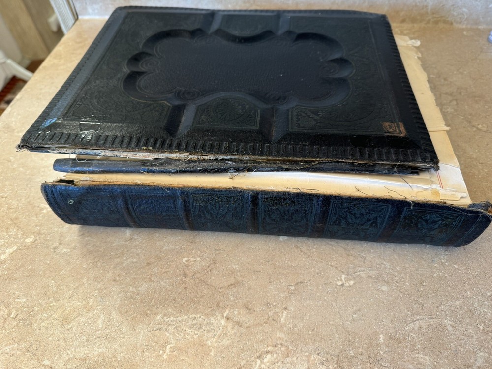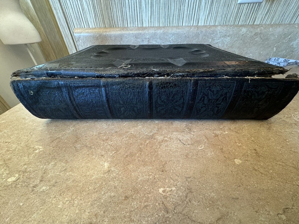 Very old Bible no date but printer 20th century. Cover is separated and had been taped at one time . Leather cover see photos .