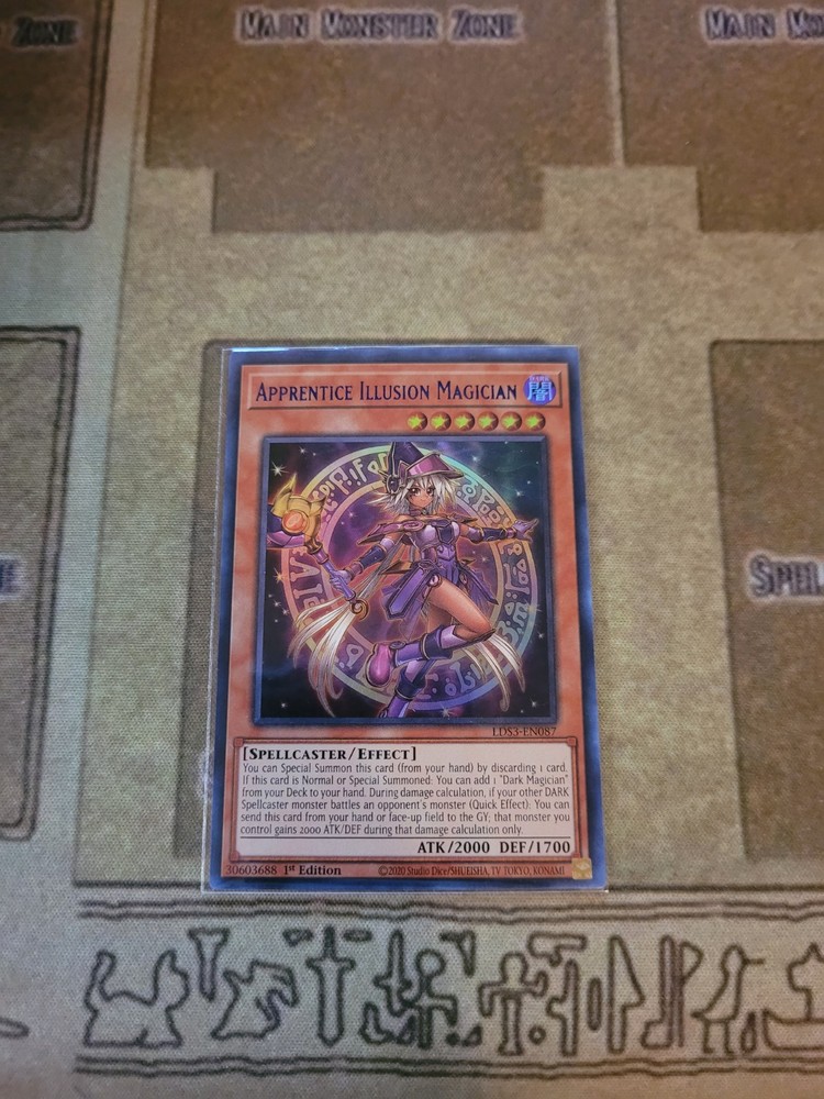 The Apprentice Illusion Magician card is a rare and sought after collectible in the Yu-Gi-Oh! TCG. This 1st Edition card from the Legendary Duelists: Season 3 set features a Dark attribute, high Attack/Power and Defense/Toughness stats, and belongs to the Spellcaster creature type. With its ultra-rare rarity and near mint condition, this English-language card is a valuable addition to any card collection, showcasing the craftsmanship and design of manufacturer Konami.