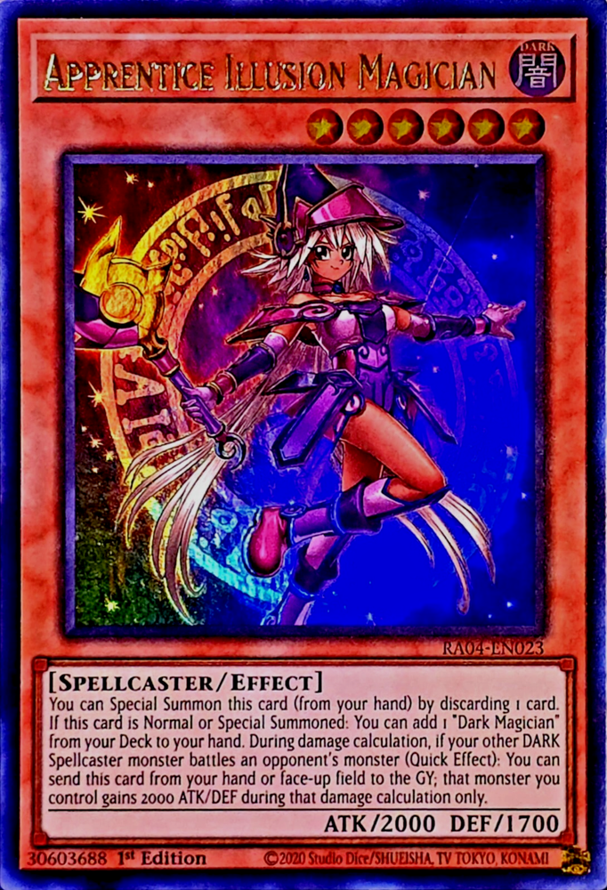 Bluefires Stuff daniel8769-2008 has 99.1% Positive Feedback Welcome! At my store, you will find collectibles and refurbished tech. From recycled memory chips and processors to a variety of storage drives and rebuilt desktops and laptops. I try to keep a variety of products available for everyone. From a single Yu-Gi-Oh! card to a full themed structure Apprentice Illusion Magician RA04-EN023. C ondition is "New". Shipped with USPS. Item Description Buyers Note: Near Mint for any collector or player. This card is in Near Mint or better. Card Name: Apprentice Illusion Magician RA04-EN023 - 1st Edition Set: RA04 - Quarter Century Stampede Quantity: 1 Edition: 1st Rarity: Ultra Rare Condition: NM Payment Information & Terms of Sale Credit Cards: We accept Visa, MasterCard, American Express, and Discover Card through PayPal. Payments are due within 3 days of purchase date! Sorry, no exceptions! Orders are shipped within 24 hours of payment. Orders placed & paid after 12noon PST on Fridays, weekends (Saturdays & Sundays), and Holidays are shipped the following business day. Cards shipped First Class Mail are in a hard plastic top loader with a Waterproof/Tear resistant Bubble Envelope w/Delivery Confirmation, NO INSURANCE! I RECOMEND THIS FOR DELIVERIES OUTSIDE THE CONTENINTAL USA. Continental USA & select countries (Canada, Europe, Australia) Residents of Puerto Rico can only use this service. Cards shipped eBay Standard Envelope for Trading Cards up to $20 are mailed in a standard letter envelope with a hard plastic top loader w/Delivery Confirmation. Delivery can take up to 3 to 5 business days . Continental USA & select countries (Canada, Europe, Australia) THIS SERVICE IS NOT AVAILABLE TO ADDRESSES TO PUERTO RICO. Cards shipped with free shipping are mailed in a standard letter envelope with a hard plastic top loader w/Delivery Confirmation. Delivery can take up to 3 to 5 business days . Continental USA & select countries (Canada, Europe, Australia) This service is excluded for Puerto Rico . I ship Worldwide! I am not responsible for any International customs, taxes, fees, etc. It’s the buyer’s full responsibility. Give up to 30 days time for deliveries outside the Continental U.S. I have no control over administration issues of services provided by other countries and their governments. Once product leaves the U.S please be patient if delivery is delayed. Condition Guide: I do not sell any cards that are in MINT condition, the best condition that we offer is near mint. Near Mint (NM) - Cards in Near Mint condition show minimal to no wear from shuffling, play or handling and can have a nearly unmarked surface, crisp corners and unblemished edges outside of a few minimal flaws. A Near Mint card may have a tiny edge nick or a tiny scratch or two, but overall look nearly un-played with no major defects or flaws. Lightly Played (LP) - Cards in Lightly Played condition may have minor border or corner wear or even just slight scuffs or scratches. There are no major defects such as water damage, bends or issues with the structural integrity of the card. Noticeable imperfections are okay, but none should be too severe or at too high a volume. Moderately Played (MP) - Cards in Moderately Played condition exhibit condition issues visible at a casual glance. Cards in Moderately Played condition can have border wear, corner wear, scratching or scuffing, creases or whitening, minor dirt buildup or any combination of mild examples of these marks. A Moderately Played card may have some form of a more major marking, such as spot water damage or creasing that doesnʼt affect card integrity, but not in combination with other issues such as scratches, scuffs or border/edge wear and not impacting a large area of the card. Heavily Played (HP) - Cards in Heavily Played condition show a severe amount of wear. Heavily Played condition can include cards that have major creasing, major whitening, major border wear or any combination of those flaws. (These flaws cannot prevent the card from being tournament playable when sleeved.) Damaged - Cards in Damaged condition can exhibit a tear, bend or crease that may make the card illegal for tournament play, even in a sleeve. Cards in Damaged condition may have extreme border wear, extreme corner wear, heavy scratching or scuffing, folds, creases or tears or other damages that impacts the structural integrity of the card