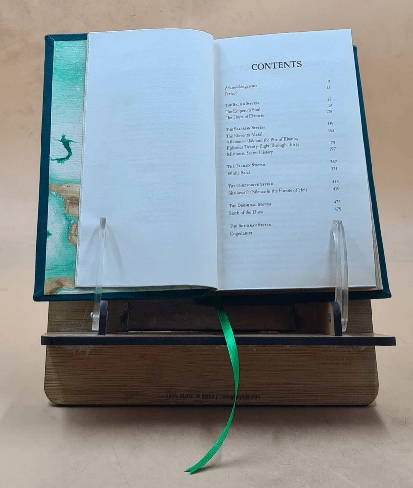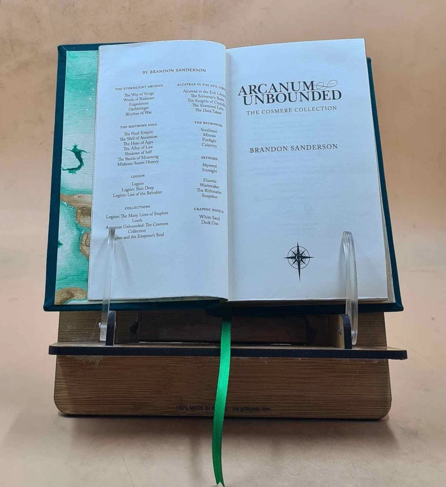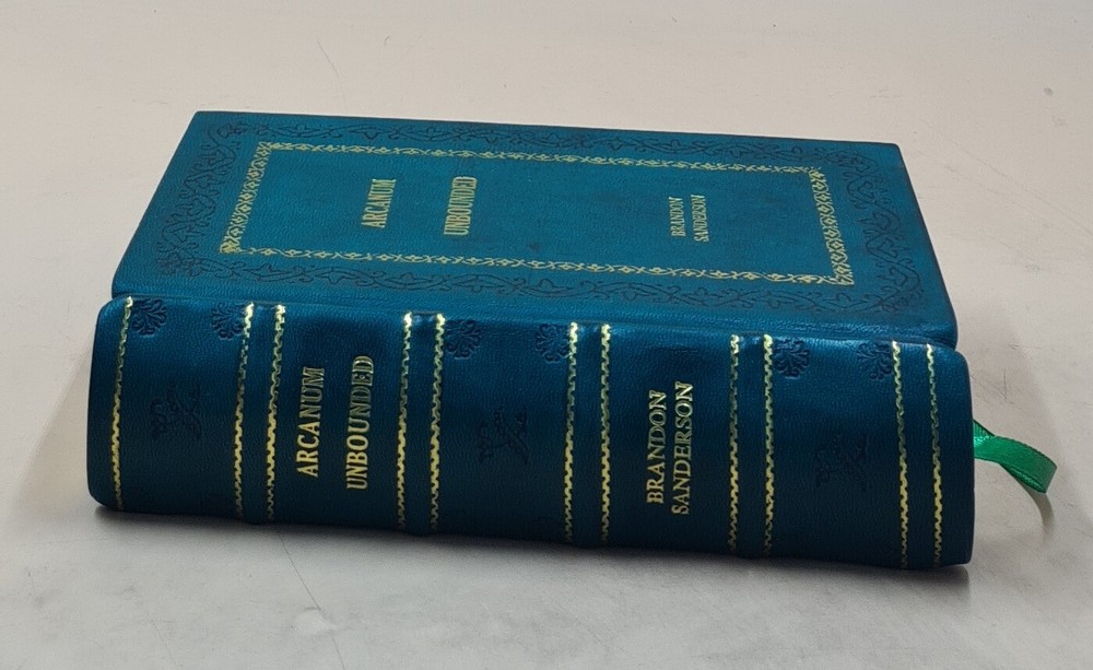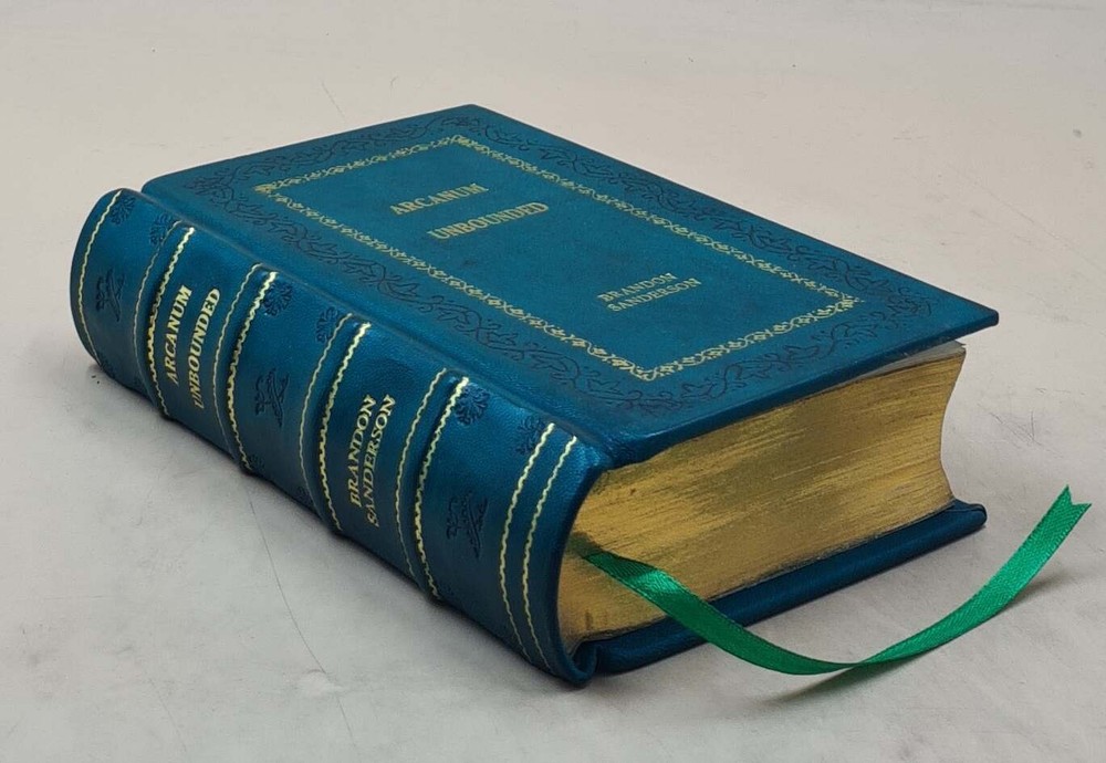 GYAN BOOKS INTRODUCING A REMARKABLE LEATHER-BOUND EDITION, METICULOUSLY CRAFTED BY THE ESTEEMED INSTITUTION " RARE BIBLIO". This title holds the distinction of being a Bestseller, highly praised by readers across the GLOBE. We are thrilled to present this literary gem exclusively to our elite readers, meticulously encased in our one-of-a-kind Premium Leather Binding . Following your order, we purchase the book from the original publisher/distributor and embark on the process of rebinding to elevate this book to a Luxurious Reading Style. A UNIQUE LEATHER-BOUND BOOK FOR ELITE READERS/COLLECTORS OF OLD RARE AND BESTSELLING BOOKS. For the Binding, we use GENUINE LEATHER , graced with opulent GOLDEN LEAF DETAILING on the SPINE , FRONT COVER , AND BACK COVER , ADDED BY EDGE GILDING . ABOUT US ★ We deal into reprinting of the master pieces crafted by authors around the world. ★ We are proud to say that we have a collection of over 25 million books and our collection includes books that are as old as 200 years and hence are considered as RARE BOOKS. ★ We are pioneer in this field having experience of 40 years. ★ We also undertake printing and Leather Binding jobs of other books. ★ Thesis printing and Leather Binding is one of our important Service ★ Many publishers and author approach us for their books to bind in our Unique leather binding format for their special customers. ★ Our craftsmen are active in this job since generations. ★ Restoration of old books is our expertise ★ We are known by our Customization options. ★ We have many leather color options in our bucket. ★ The whole process is done manually so that it gives you the same feeling of old book. OFFERS & SPECIALIZATION: ★ SPECIAL DISCOUNT FOR BULK ORDERS, PLEASE CONTACT US. ★ CHOOSE ANY LEATHER COLOR OF YOUR CHOICE WITHOUT ANY EXTRA CHARGES, JUST CLICK ON IMAGES FOR OPTIONAL COLORS AND INFORM US YOUR CHOICE THROUGH MAIL WITH COLOR CODE. ★ WE OFFER A DIVERSE RANGE OF LEATHER COLORS, INCLUDING RED , GREEN , BLUE , BLACK, MAGENTA , YELLOW , TAN . WE ALSO OFFER MULTI-COLOR LABELS WITH THESE BEAUTIFUL BOOKS ON SPECIAL REQUEST. ★ AN ORIGINAL LEATHER IS BEING USED FOR BINDING THIS BOOK WITH GOLDEN LEAF PRINTING AND DESIGNING ON SPINE, FRONT AND BACK OF THE BOOK WITH EDGE GILDING . Points to note before booking order: ★ In case of multi volume sets, please note that the above listing is for a single volume only. (To order multiple volumes, please contact us separately). ★ We urge you to appreciate that our Leather-Bound Books are Genuine works of art and are Handcrafted by our Professional Craftsmen. Thus, requiring time and care to reach the pinnacle of excellence. ★ We Prepare the Book after receiving the Order. ★ We usually take 30 business days as handling time to dispatch shipment. ★ We request you to understand that these leather-bound books are work of art and hence require time to go through different process to be the master pieces that they are. ★ We usually take 30 business days as handling time to dispatch shipment. We consider special request for a special occasion. ★ Craftsman based in India, prepared this book and shipped from different stock locations around the Globe. Product Details: - ★ Complete Title: Arcanum Unbounded: The Cosmere Collection by Sanderson, Brandon [PREMIUM LEATHER BOUND] ★ Author: Sanderson, Brandon ★ Language: English ★ No. Of Pages: 768 ★ Year: 2018 ★ We provide ?Extra customization*? on request with additional charges. ★ We also undertake printing and Leather Binding of all the books. ★ Product Disclaimer: Please be aware that because leather is a natural material, slight discoloration or change in texture may be visible. About the Book: - An all-new 120-page Stormlight Archive novella, Edgedancer, is the crown jewel of Arcanum Unbounded: The Cosmere Collection, the first book of short fiction by #1 New York Times bestselling author Brandon Sanderson. These wonderful works convey the expanse of the Cosmere and tell exciting tales of adventure that Sanderson fans have come to expect, including the Hugo Award-winning novella The Emperor's Soul and an excerpt from the graphic novel White Sand. Arcanum Unbounded also contains the novella Edgedancer, a tale from the Stormlight Archive that bridges the gap between Words of Radiance and Oathbringer. Arcanum Unbounded is an indispensable volume no Sanderson fan can do without. Other Tor books by Brandon Sanderson The Cosmere The Stormlight Archive The Way of Kings Words of Radiance Edgedancer (Novella) Oathbringer The Mistborn trilogy Mistborn: The Final Empire The Well of Ascension The Hero of Ages Mistborn: The Wax and Wayne series Alloy of Law Shadows of Self Bands of Mourning Collection Arcanum Unbounded Other Cosmere novels Elantris Warbreaker The Alcatraz vs. the Evil Librarians series Alcatraz vs. the Evil Librarians The Scrivener's Bones The Knights of Crystallia The Shattered Lens The Dark Talent The Rithmatist series The Rithmatist Other books by Brandon Sanderson The Reckoners Steelheart Firefight Calamity